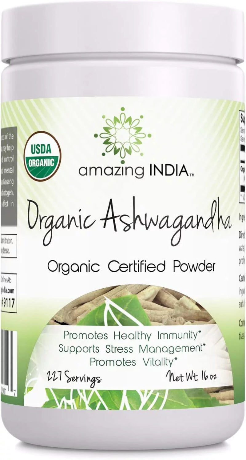 - USDA CERTIFIED ORGANIC ASHWAGANDHA POWDER Amazing India Organic Ashwagandha powder is certified organic in accordance with USDA. All our products are made under strict manufacturing standards to ensure purity & potency. We offer best quality products for the best value. All our products are Third Party Tested and are free of Artificial Colors, Preservatives, or Flavors