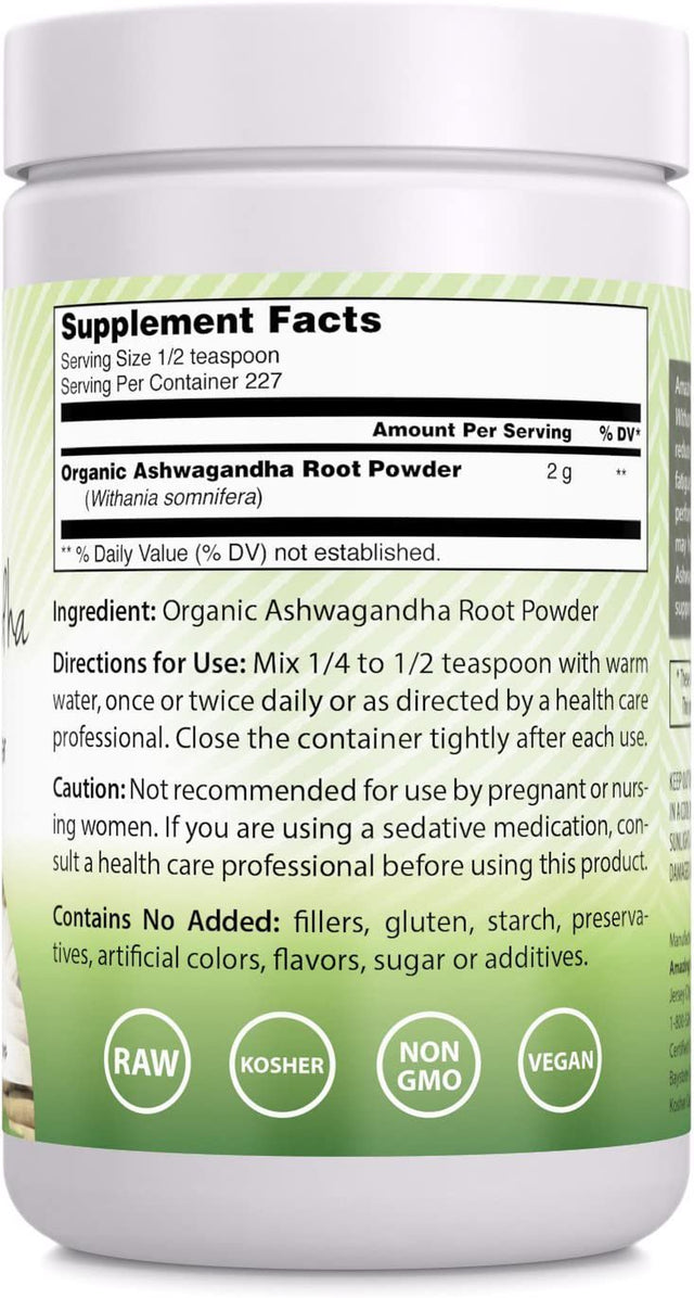 | Product Name | Amazing India Organic Ashwagandha, Organic Certified Powder, 16 oz (454 g) |
