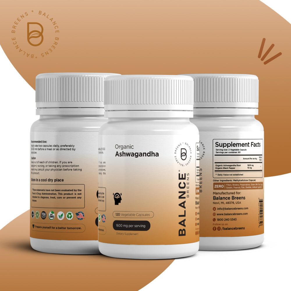 Balancebreens Certified Organic Ashwagandha 1600 Mg with Black Pepper - 120 Vegan Capsules - Stress, Mood, Energy and Thyroid Support Supplement - Non-Gmo Gluten-Free Pills is backordered and will ship as soon as it is back in stock.