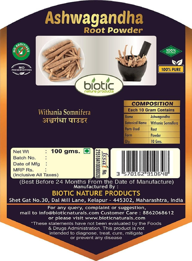 Biotic Natural Ashwagandha Powder/Aswagandha Powder - 100Gm