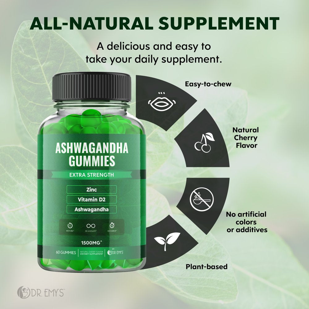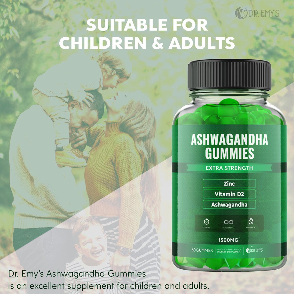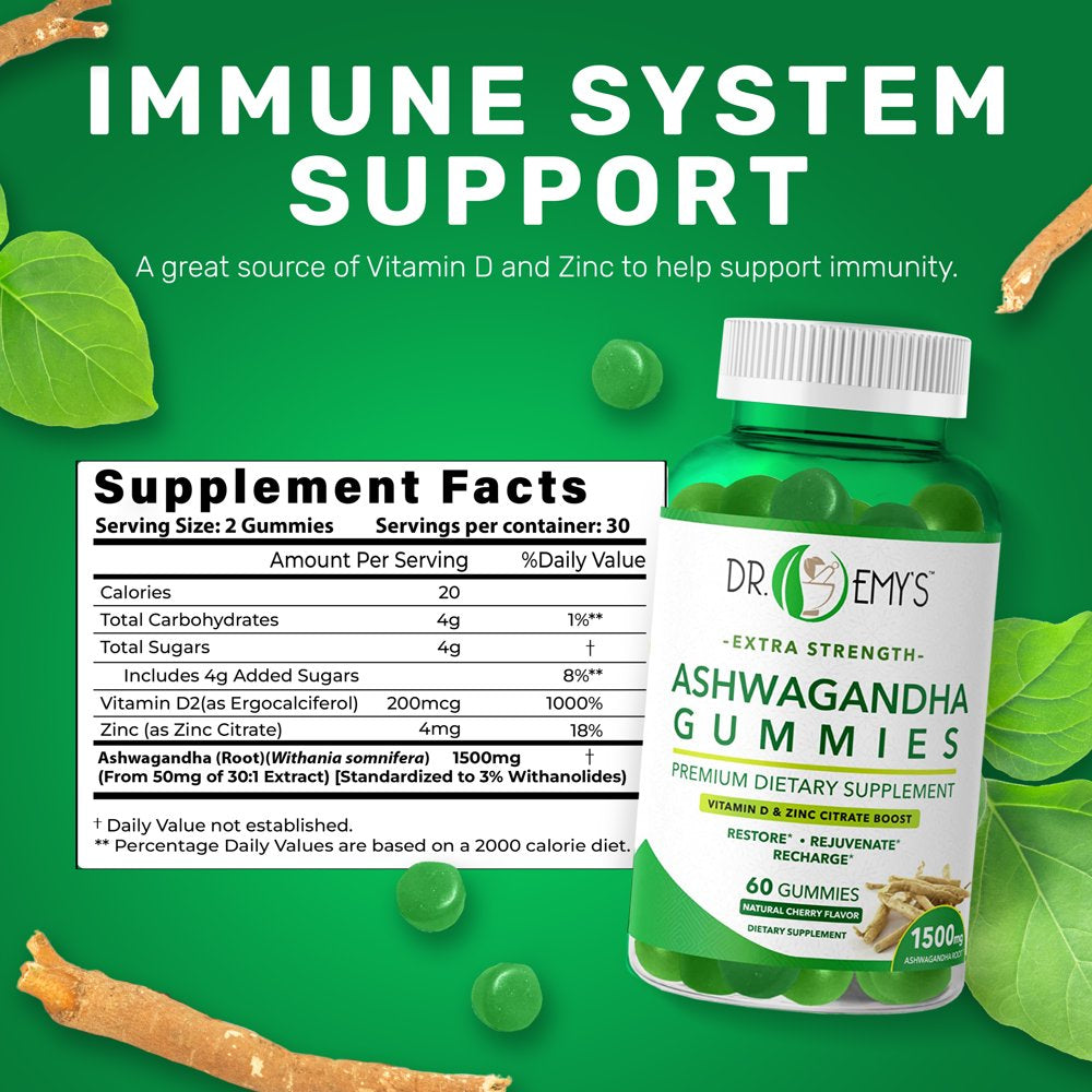 Dr. Emy'S Ashwagandha Gummies Vitamin D, Zinc Citrate Boost Supplement Stress Relief, Sleep, Immune System Ashwa Gummy Women Men Vegan, Gluten Free, Allergen Free Restore, Rejuvenate, Recharge (1)