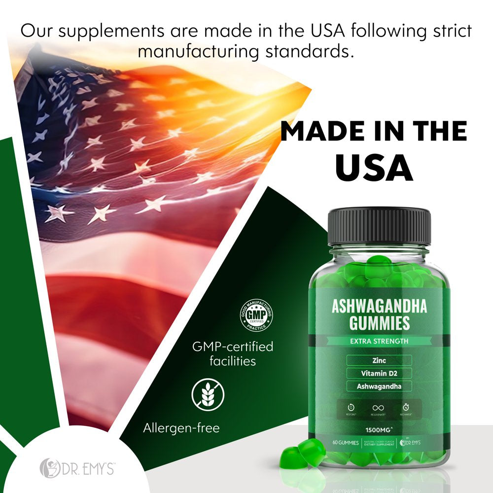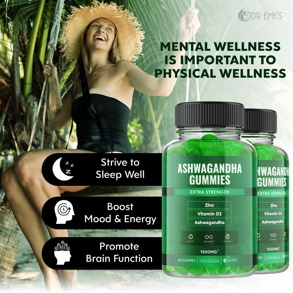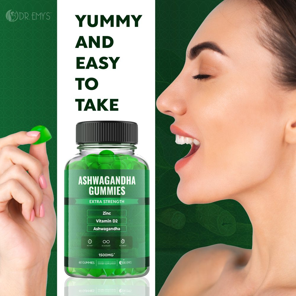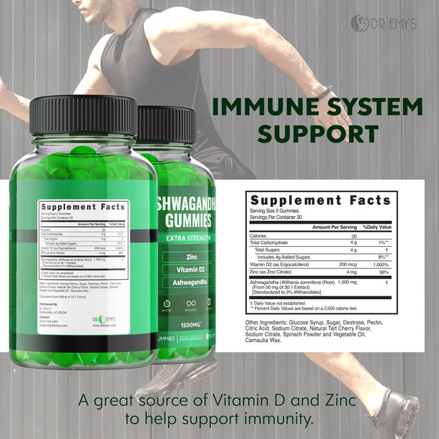 Dr. Emy'S Ashwagandha Gummies Vitamin D, Zinc Citrate Boost Supplement Stress Relief, Sleep, Immune System Ashwa Gummy Women Men Vegan, Gluten Free, Allergen Free Restore, Rejuvenate, Recharge (2)