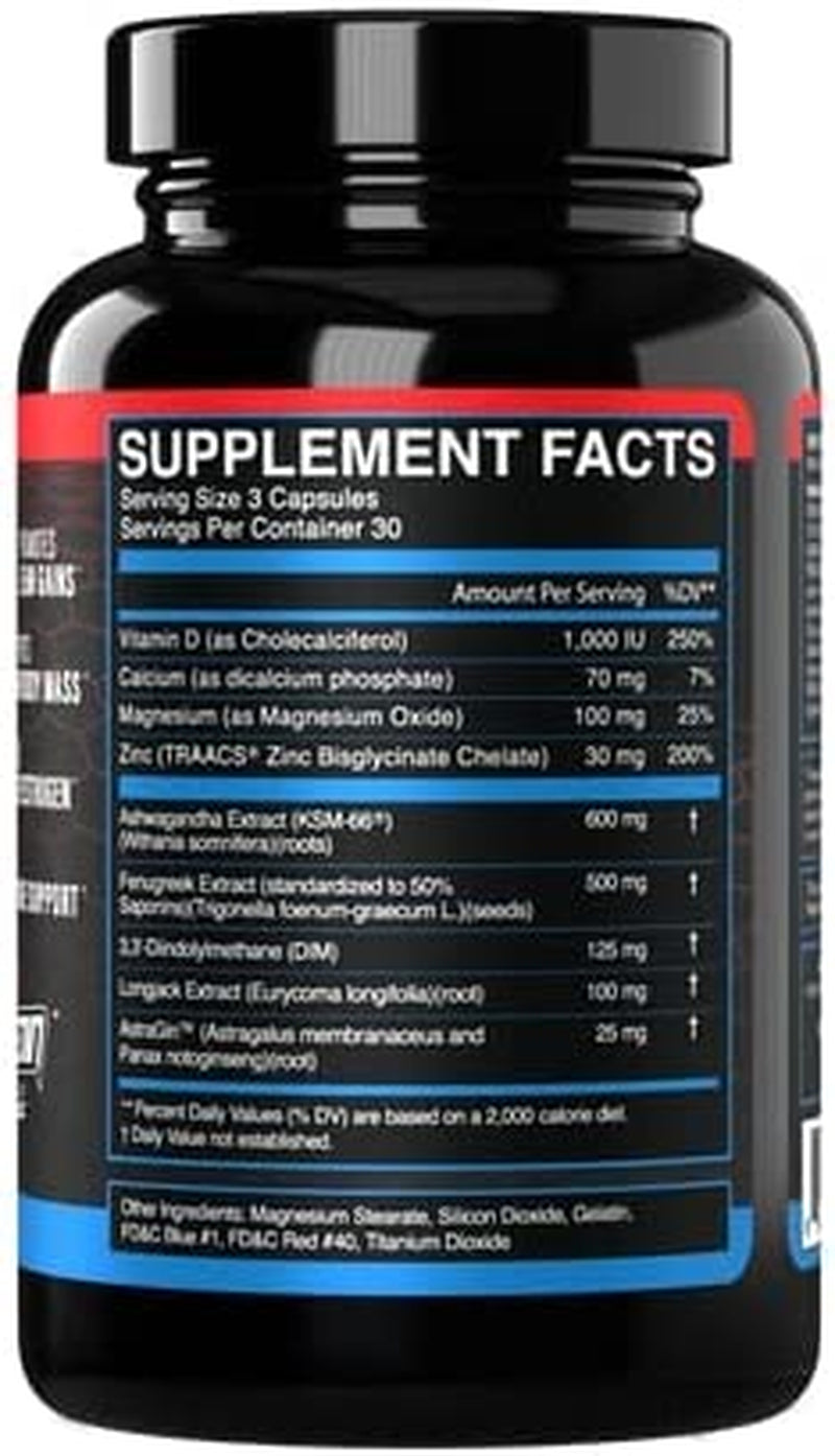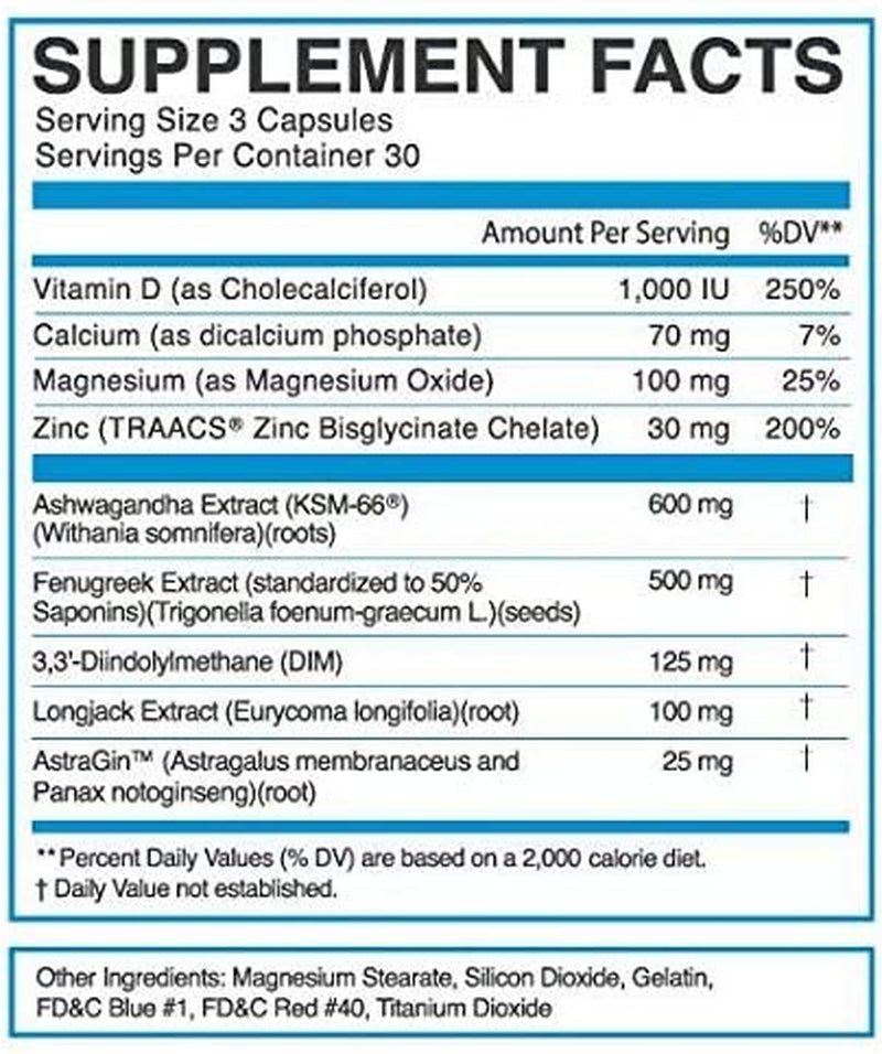 • CONTAINS GENUINE INGREDIENTS: The combination of Ashwagandha (KSM-66), fenugreek, and longjack synergistically work to increase exercise performance, strength and fat loss, naturally supporting testosterone levels. Along with AstraGin (for enhanced absorption) and added vitamins proven to support testosterone levels.