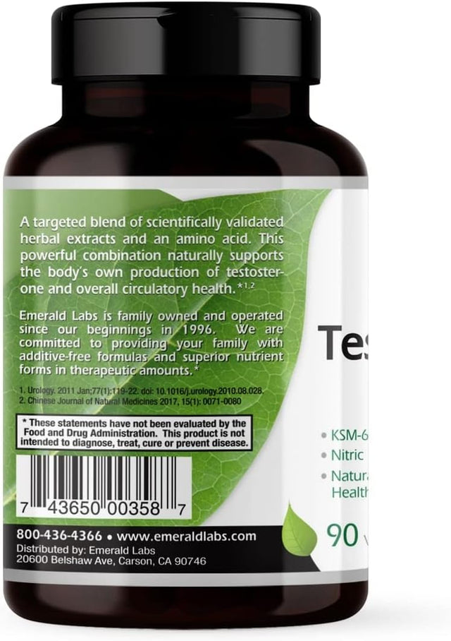 Emerald Labs Testosterone Health - Dietary Supplement with Eurycoma Longifolia, L-Citrulline, and Ashwagandha for Overall Circulatory and Sexual Health - 90 Vegetable Capsules