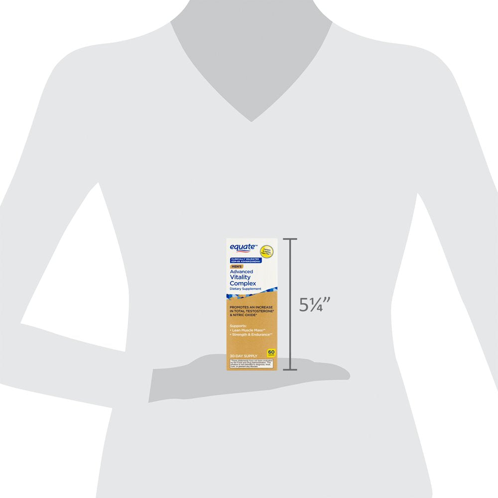 Equate™ Men's Total Testosterone is powered by clinically studied KSM-66 Ashwagandha® and Spectra™ vegetable blend. As men age, they are able to use less and less of the testosterone that their bodies produce. This can be felt by the aging male in areas such as strength, libido, muscle endurance - and a general "less than prime" feeling. Equate™ Men's Advanced Vitality Complex promotes an increase in total testosterone (1) and nitric oxide.* It also helps to support lean muscle mass, strength, and endurance.ꝉ* Supplement your healthy lifestyle with Equate™ Men's Advanced Vitality Complex.