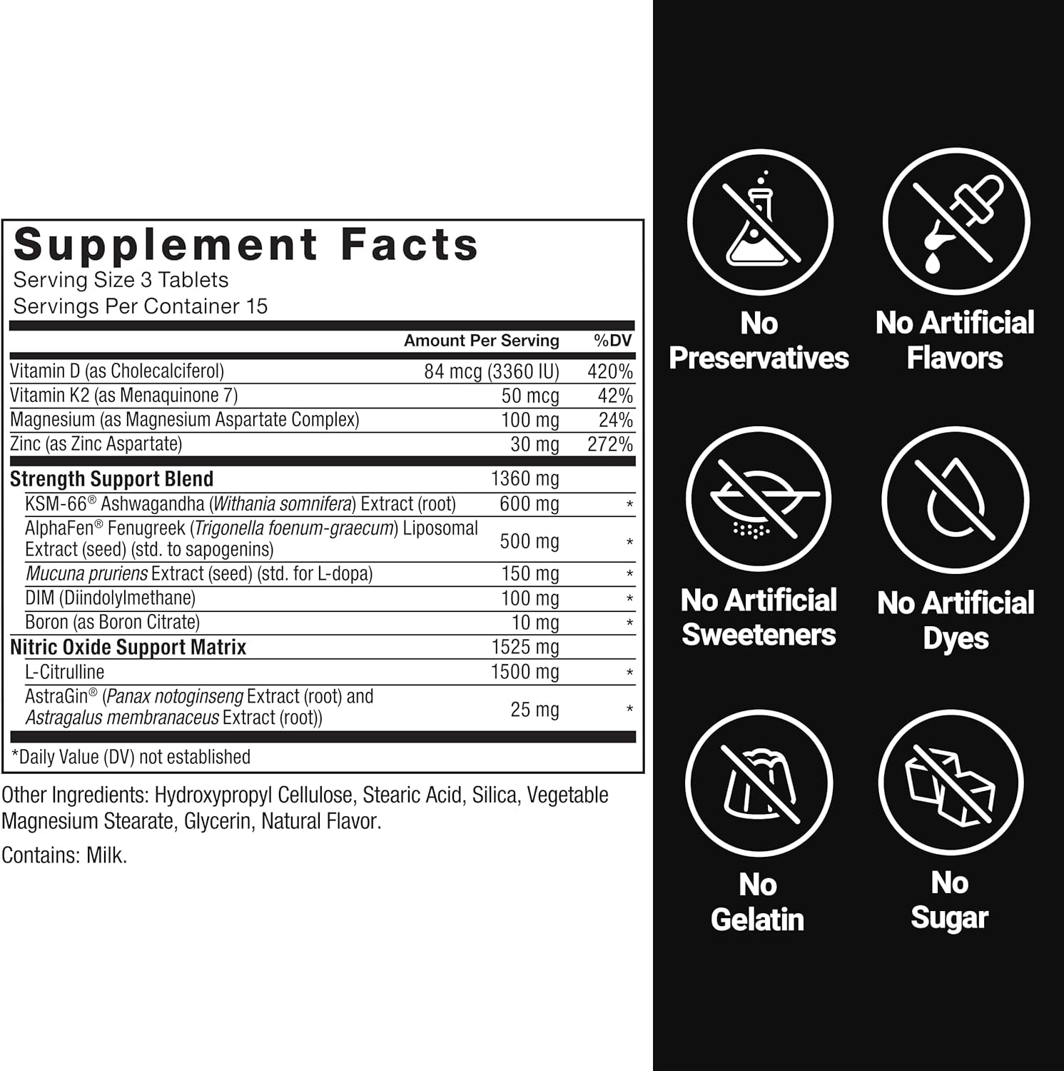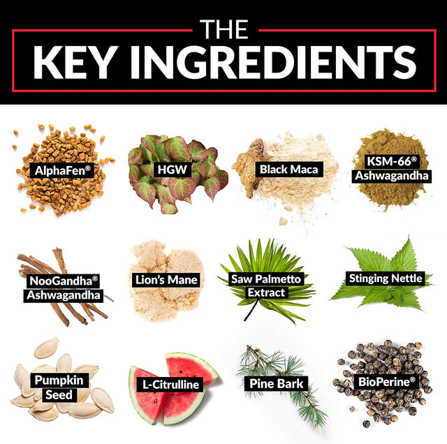 - Build compelling muscle & Strength: increased levels of total testosterone, paired with super mushroom Lion's Mane and KSM-66 Ashwagandha, help meaningfully increase strength and endurance, as well as improve mental clarity for unreal performance.