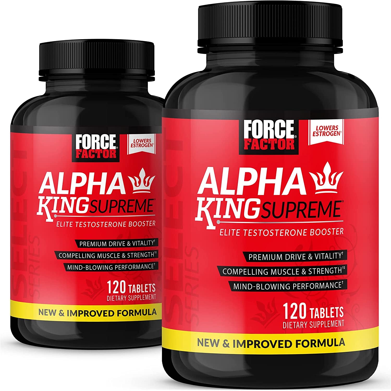 FORCE FACTOR Alpha King Supreme, 2-Pack, Testosterone Booster for Men with Fenugreek Seed & Ashwagandha to Increase Drive & Vitality, Boost Performance, Build Muscle & Strength, 120 Tablets