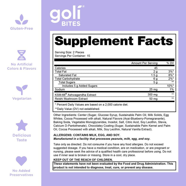 Goli Nutrition Calm Ashwagandha Bites, Chocolate Acai Berry, 30 Count