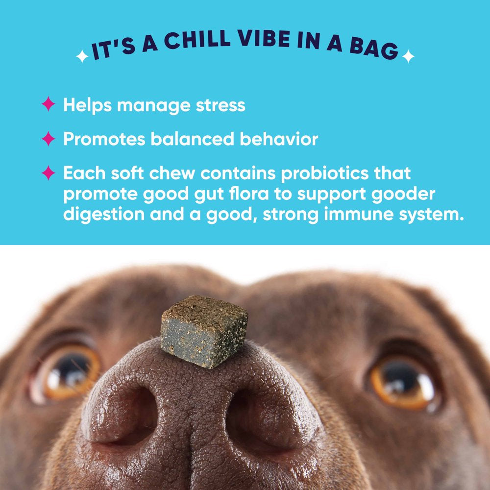 - Our tasty, Calming Dog Chews are a “Chill vibe in a bag” helping manage stress and promoting balanced behavior