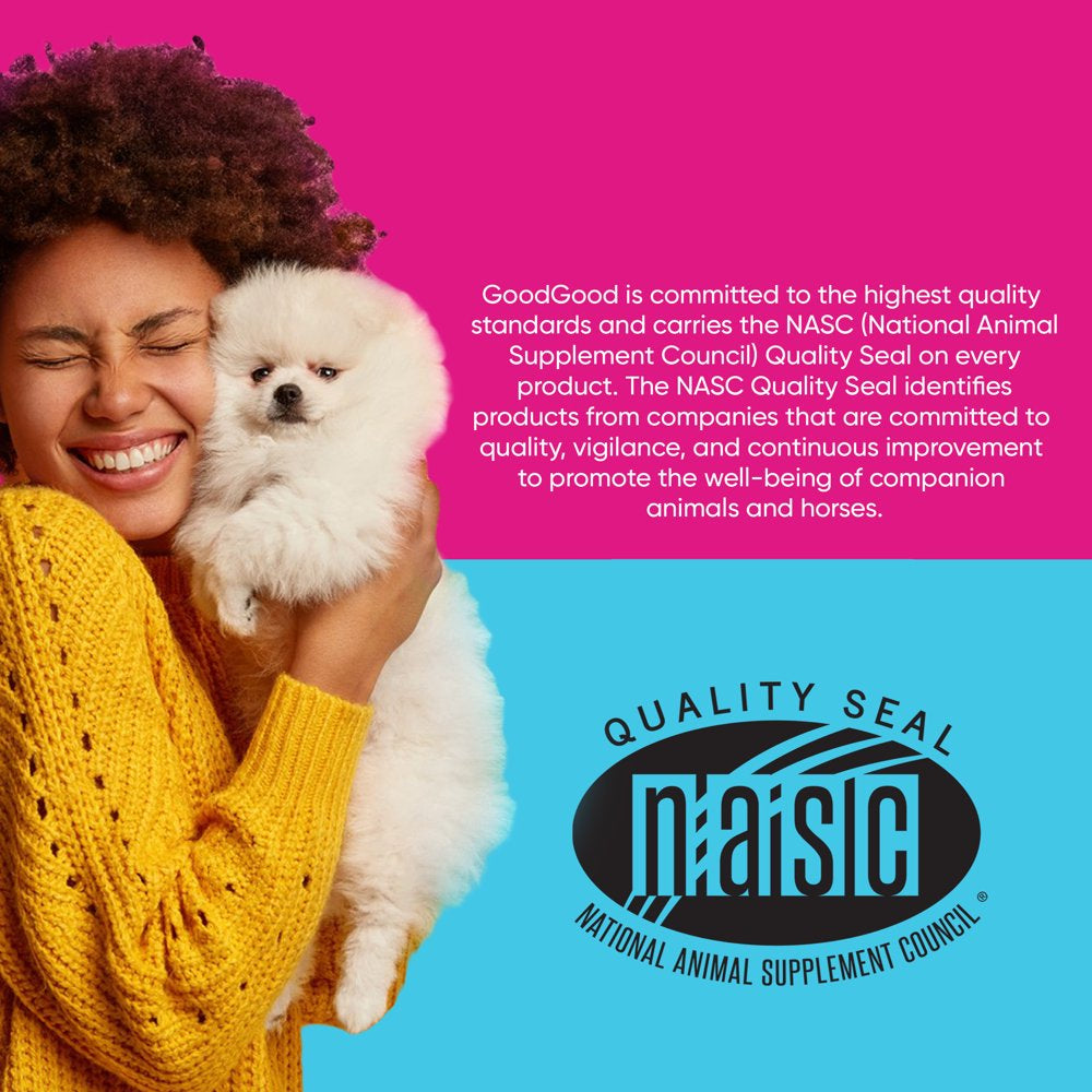 At GoodGood, we created Calming Dog Chews using the ‘goodest’ ingredients from Nature and Science to help keep your dog chill when life throws its curveballs. We know the world can be an overwhelming place for your furry friend. Made with Chamomile, an herb known for its relaxing properties, Ashwagandha, an herbal extract to support stress and maintain calmness and L-Theanine, an amino acid known to support the alpha waves in your dog’s brain, helping them feel calm, not drowsy. Our soft chews contain Probiotics promoting good gut flora and ‘gooder’ digestion and a strong, good immune system. All our chews are dog approved for good taste, made using quality ingredients from around the world and carry the National Animal Supplement Council Quality Seal. So you’ll feel good about how good your dog feels. Because their goodness is your goodness. And that’s pretty GoodGood.