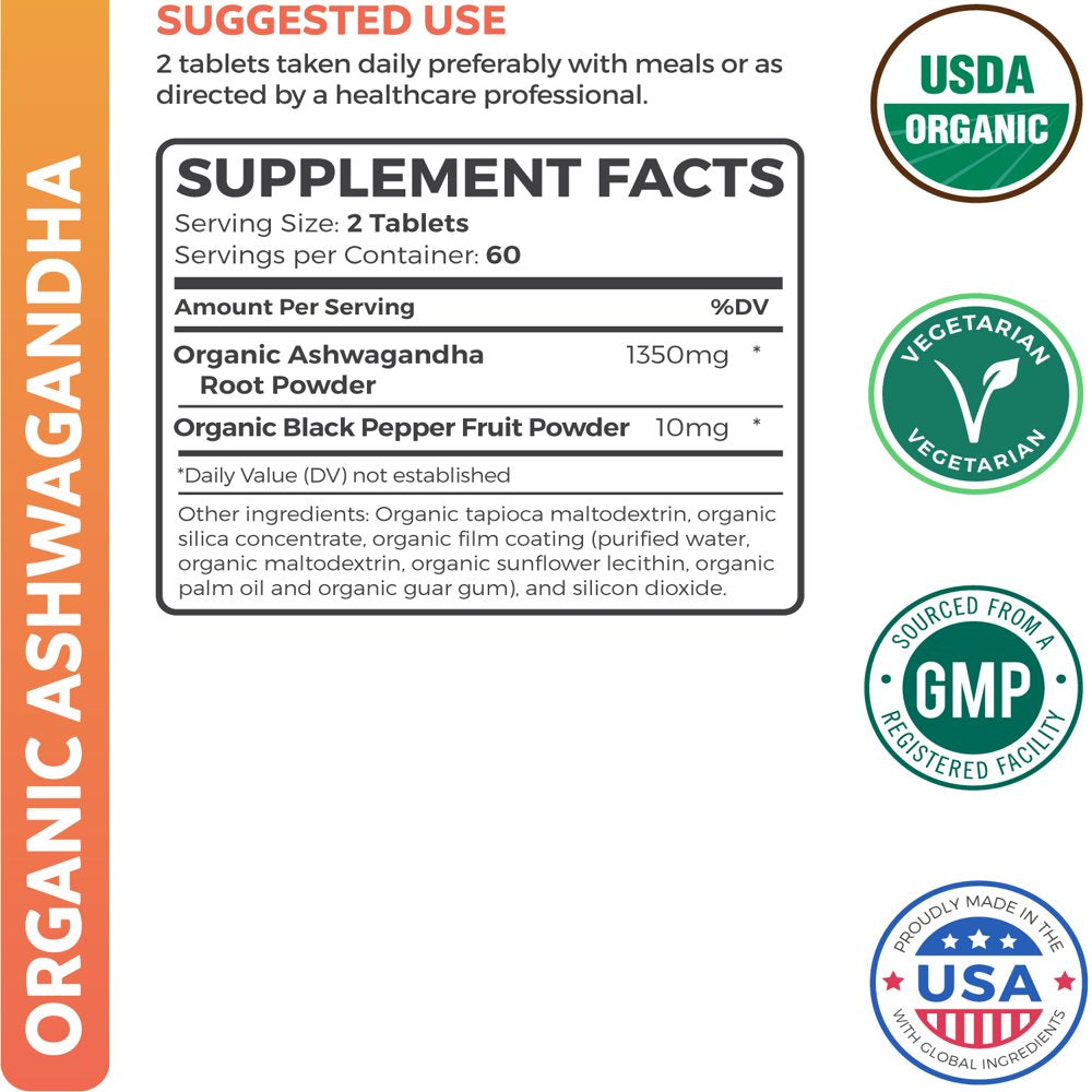 • METICULOUS MANUFACTURING: All of our ashwagandha supplements organic products are made right here in the USA in an FDA-registered and inspected facility that strictly adheres to CGMP (Current Good Manufacturing Practices) standards. In short, this means that each bottle will contain exactly what it says on the label with no fillers or preservatives beyond what’s necessary to form each tablet.