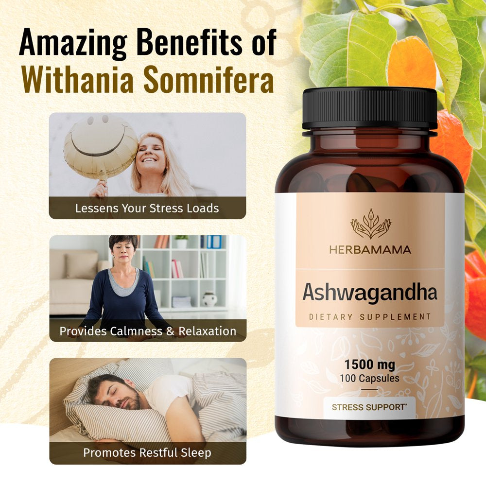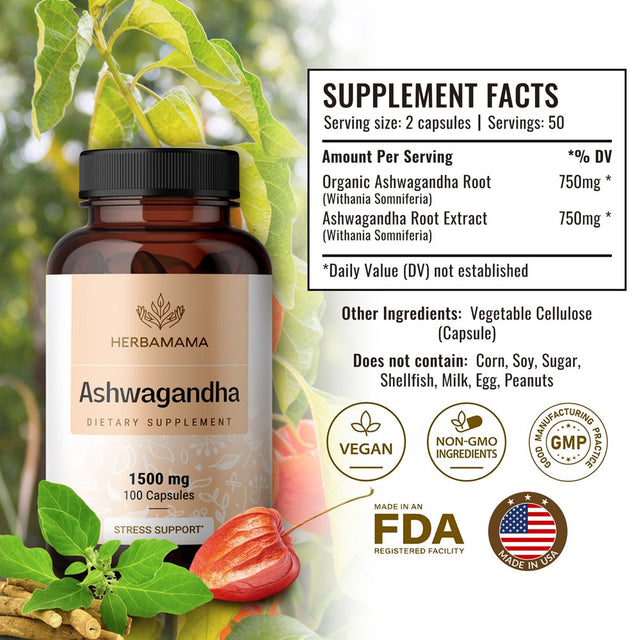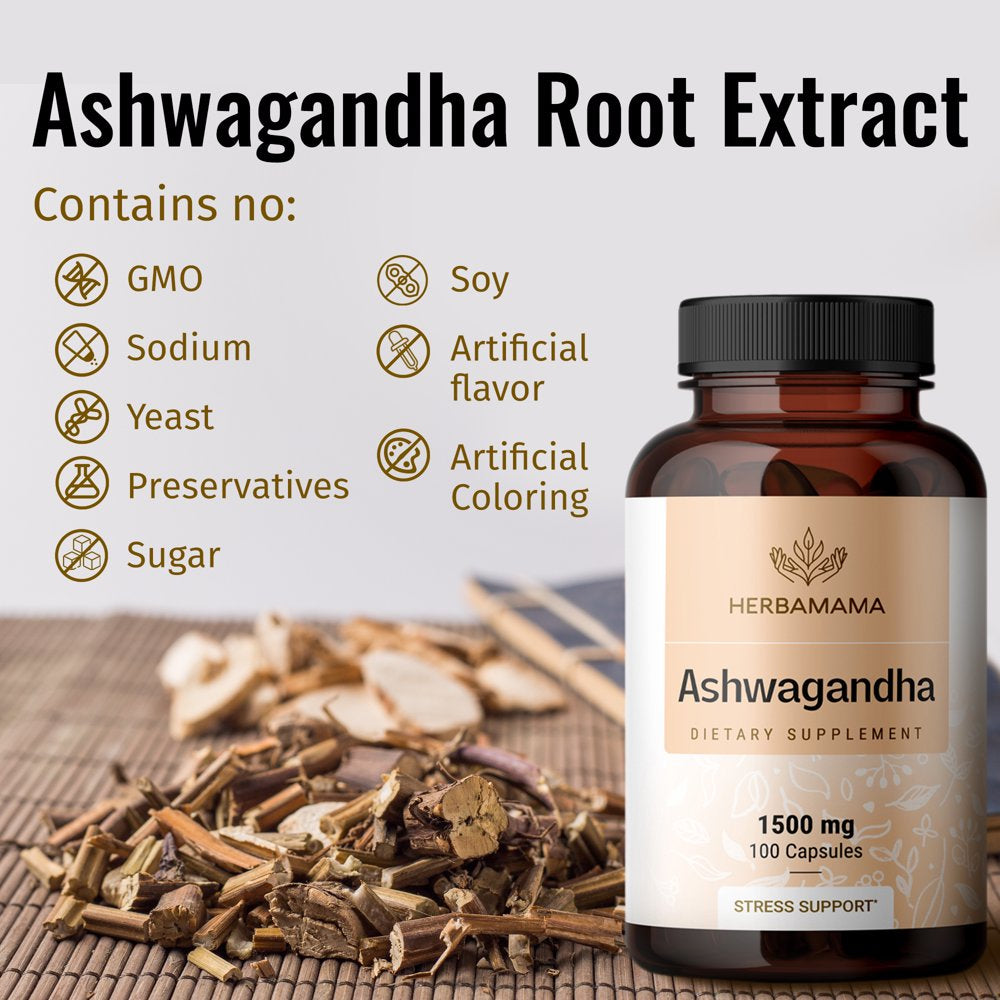 | Product Name | HERBAMAMA Ashwagandha Root Powder Capsules for Energy, Mood and Stress Support, 100 Ct |