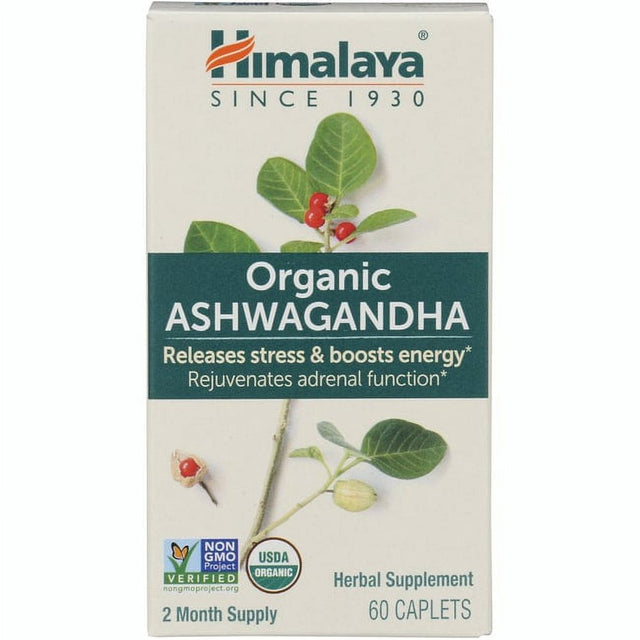 Himalaya Organic Ashwagandha, Supplement for Stress Relief, Non-Gmo, Vegan, Gluten Free, 60 Caplets