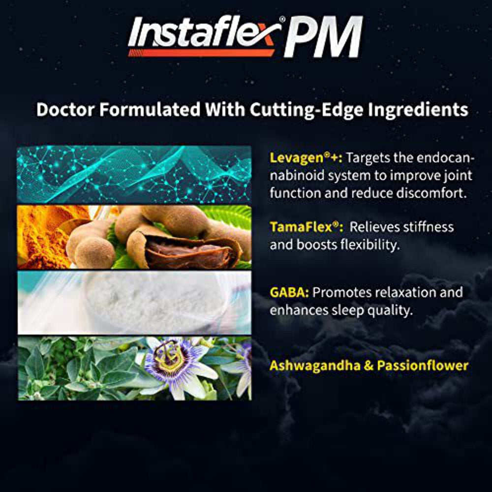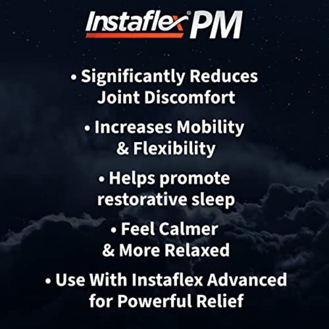 - Sore joints keeping you up at night? Not anymore! NEW Instaflex PM is the first and only nighttime formula that relieves nagging joint discomfort, increases mobility and flexibility, and enhances sleep quality