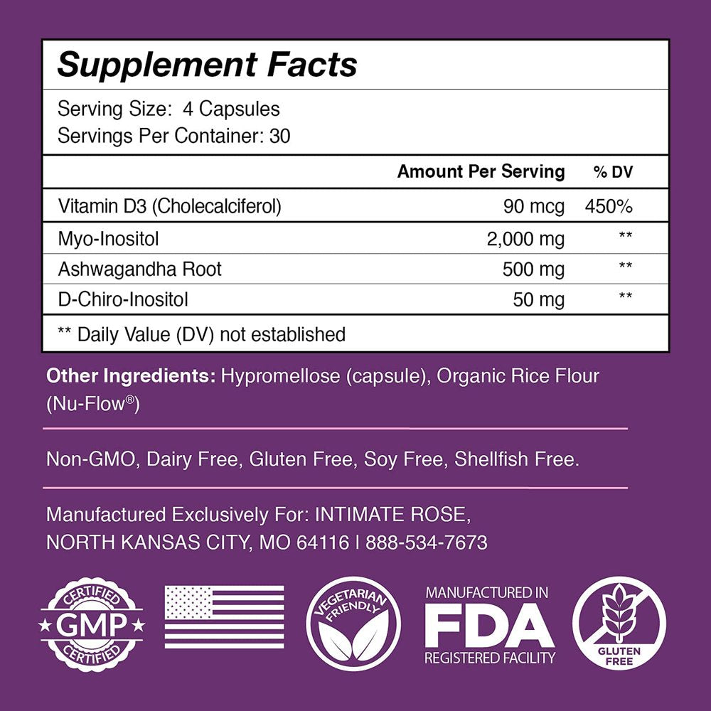 | Product Name | Intimate Rose Myo and D Chiro Inositol Supplement Vitamin D3 and Ashwagandha 120 Capsules |