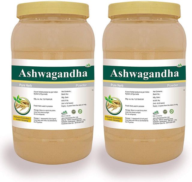 Jain'S Ashwagandha Powder 1Kg (Pack of 2) - Indian Ayurveda'S Pure Natural Herbal Supplement Powder