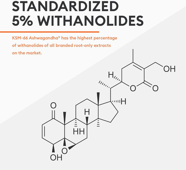 KSM-66 Ashwagandha has the highest percentage of withanolides of all branded root-only extracts on the market.