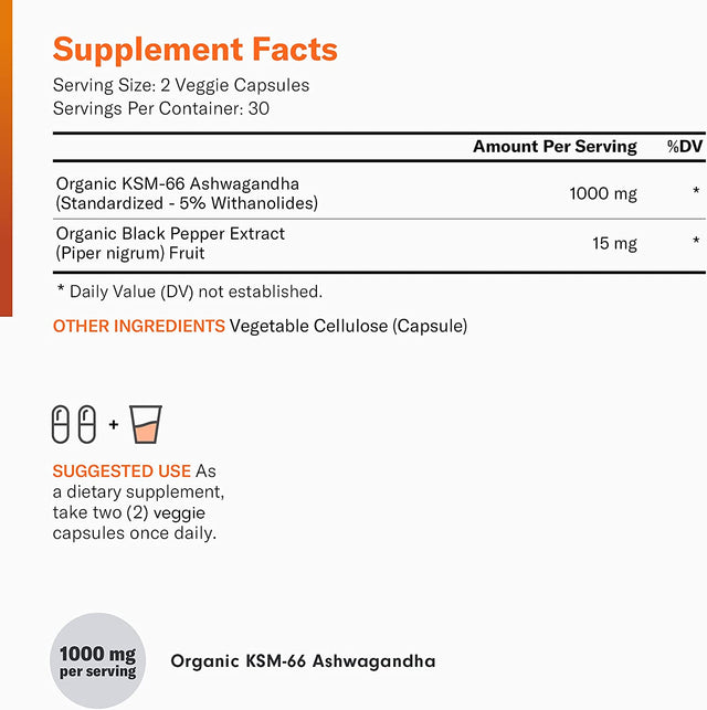 - Stress Support: A published study showed that KSM-66 supports stress. Each Ashwagandha serving comes with 1000 mg of vegan organic KSM-66 ashwagandha