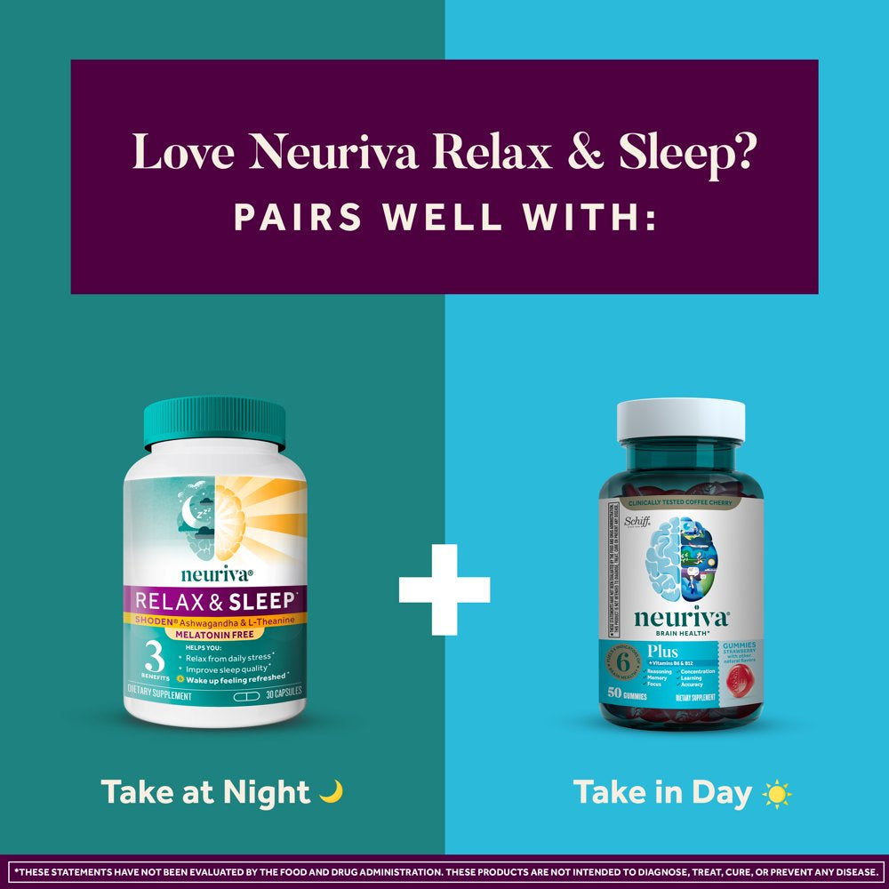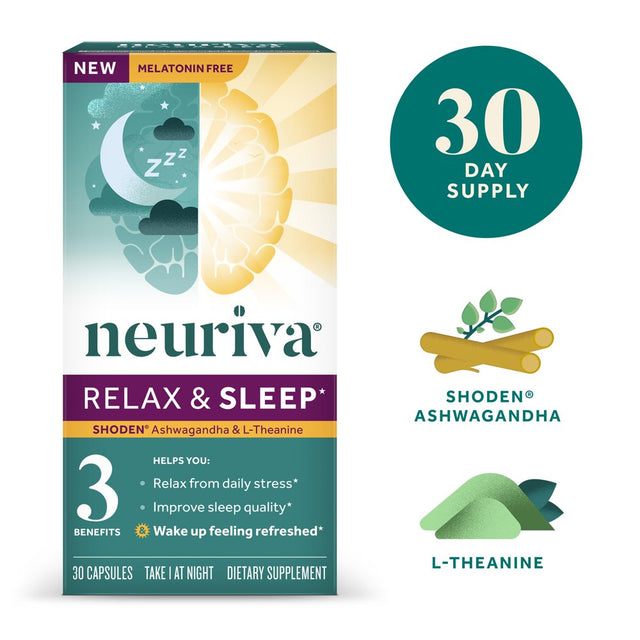 Neuriva is proud to introduce Neuriva Relax & Sleep, a nightly sleep support supplement with clinically tested L-Theanine & Shoden Ashwagandha.* We believe sleep marks the beginning of the day, not the end. Try Neuriva Relax & Sleep to help improve your sleep quality so you can wake up feeling refreshed.*OUR MISSION:Sleep is essential for the mind to recharge. Good sleep influences how your day unfolds, affecting your energy, attitude, and mood. That's why we created a supplement to help improve your sleep, so you can wake up feeling rested and recharged.*WHY L-THANINE:This amino acid, commonly found in green tea, helps you relax from everyday stress.*WHY ASHWAGANDHA:This plant extract is clinically tested to support restorative sleep and help improve sleep quality, so you can feel refreshed when you wake up.*MADE WITH YOU IN MIND:Neuriva Relax & Sleep is melatonin free, non-GMO, and vegetarian. Neuriva Sleep is also free from artificial flavors, colors, and preservatives.HOW TO ENJOY:Adults 18 years and older, take one (1) capsule daily, 30 to 60 minutes before bedtime.*These statements have not been evaluated by the Food and Drug Administration. This product is not intended to diagnose, treat, cure or prevent any disease.