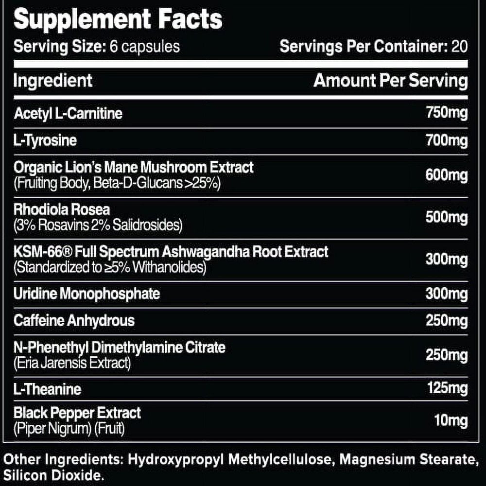 - 600mg Lion's Mane extract: Most effective mushroom supplement, Lions mane provides energy, focus. Stimulate new brain cells by nerve growth factor (NGF), providing ageless benefits to brain and body.