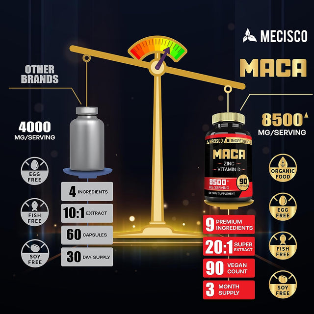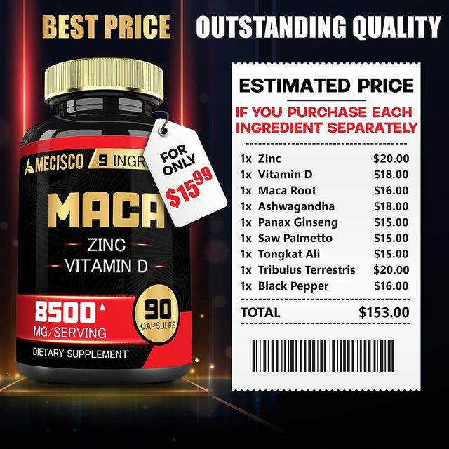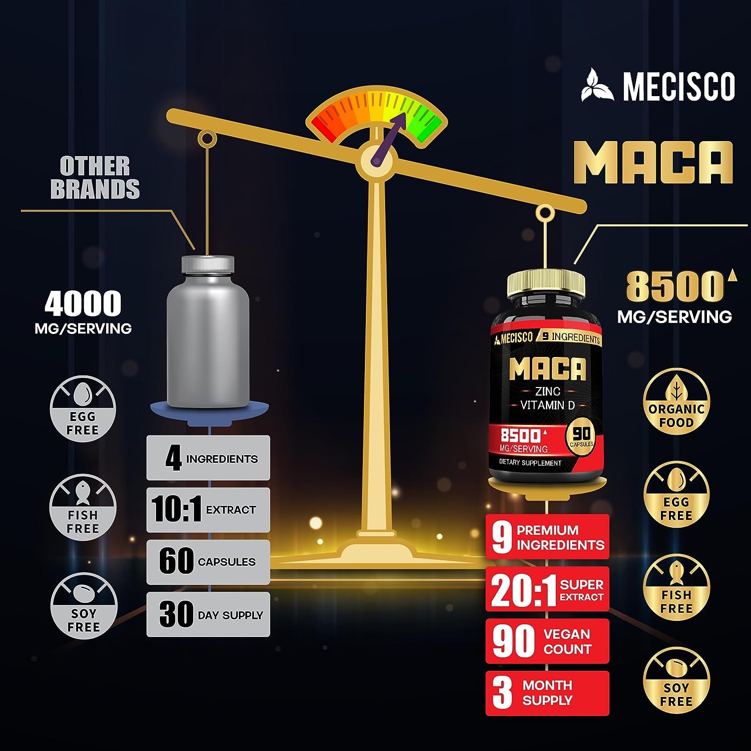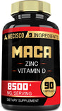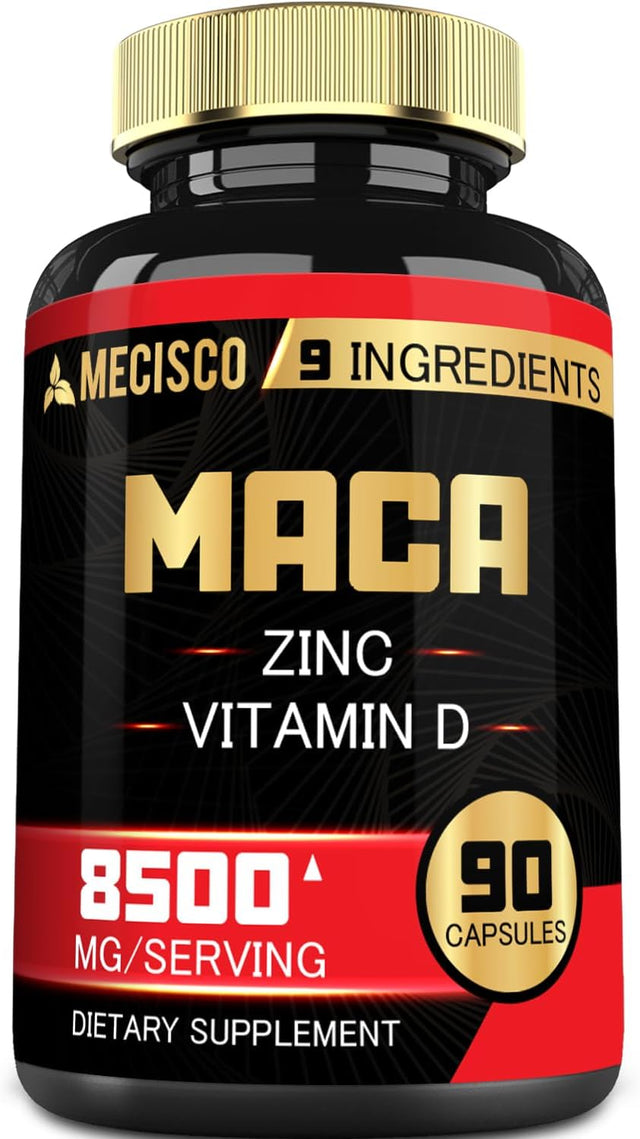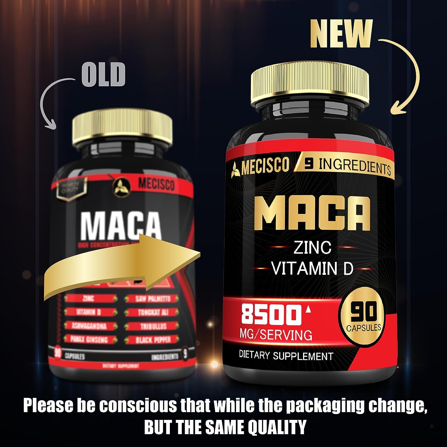 Maca Capsules - 9In1 Equivalent 8500Mg Blended with Zn, Vitamind, Ashwagandha, Ginseng, Saw Palmetto, Tongkat Ali & More - Muscle Growth, Endurance & Energy Support - 90 Count - 3 Month Supply