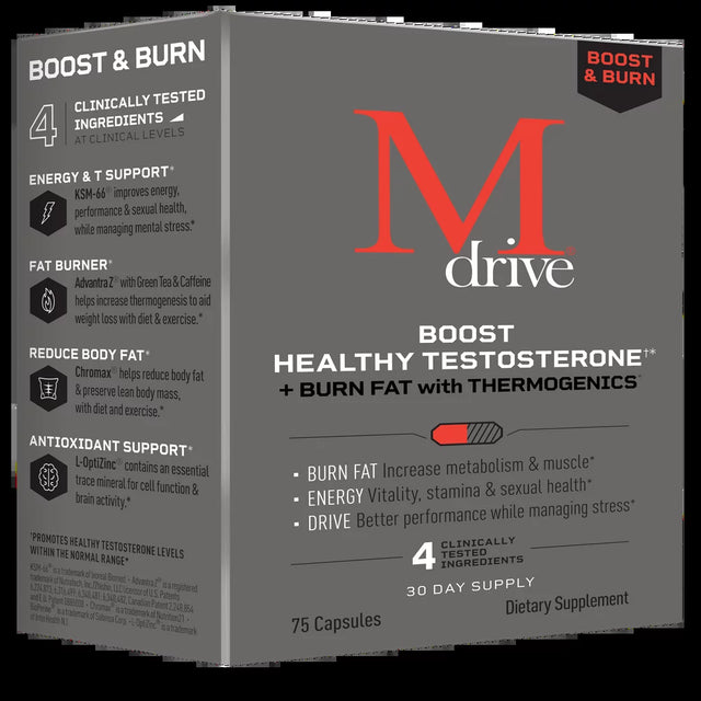 Mdrive Boost and Burn Testosterone Booster and Fat Burner for Men, Natural Energy, Strength, Stress Relief, Lean Muscle with Zinc, KSM-66 Ashwagandha, Cordyceps, Advantra Z, Chromax, 75 Capsules