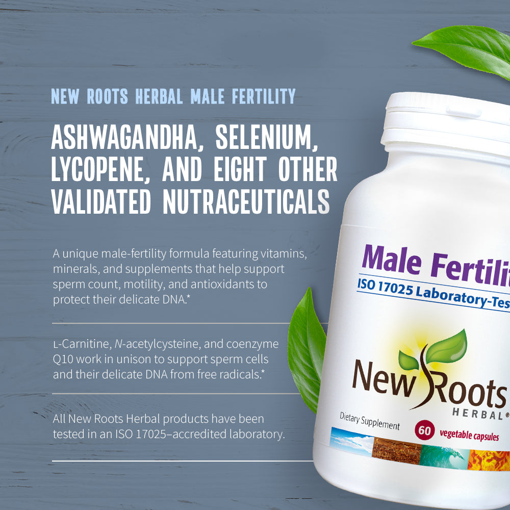 New Roots Herbal Male Fertility | Ashwagandha, Selenium, Lycopene and Eight Other Validated Nutraceuticals | 60 Veggie Caps