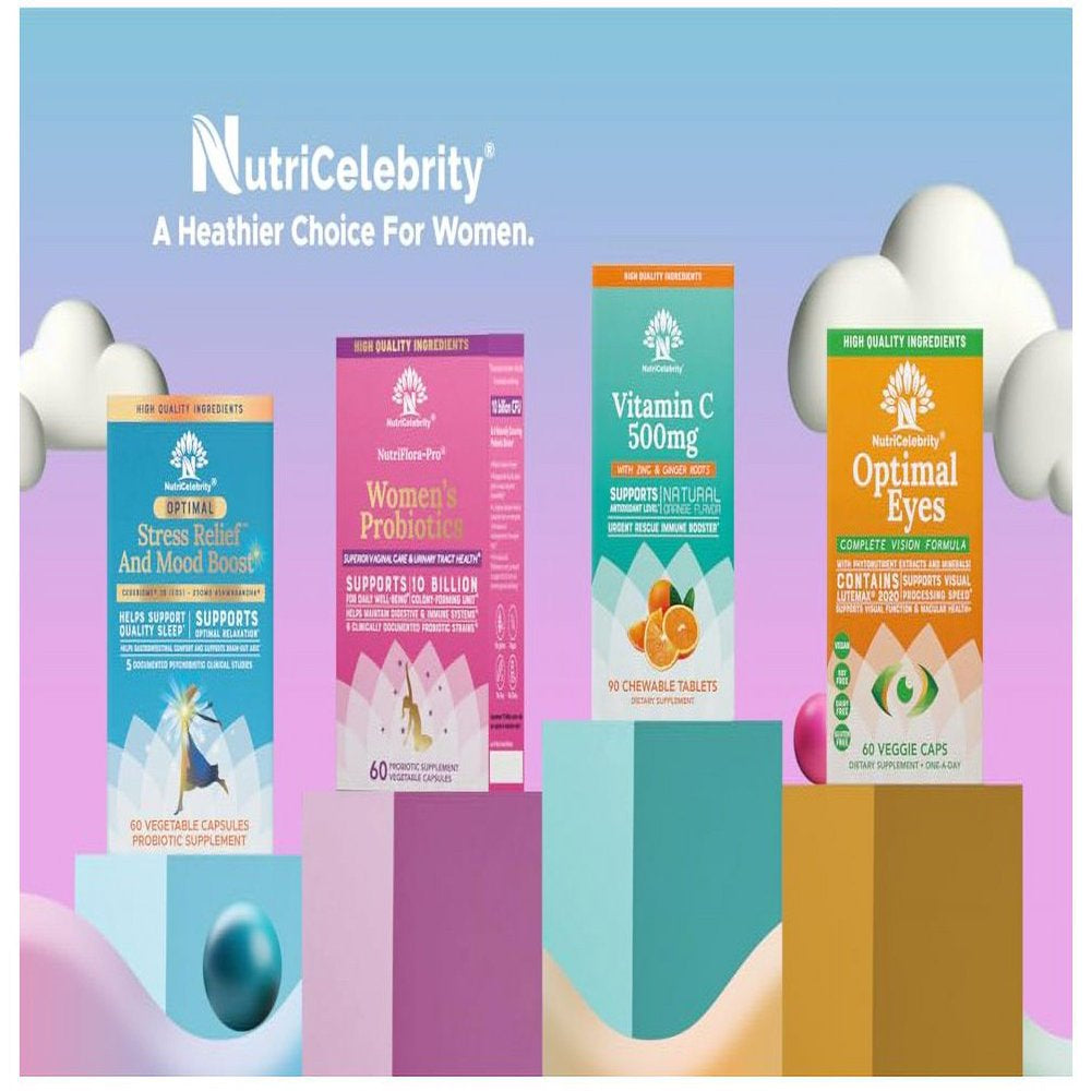 Nutricelebrity Optimal Stress Relief Supplement, Mood Support, Sleep Aid, Ashwagandha Organic, KSM-66, Brain Focus, Probiotics for Women, Gut Health, Vegan Non GMO 60 Days Supply