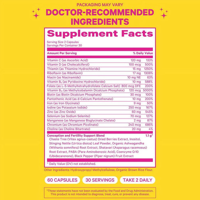 Pink Stork Fertility Supplements for Women: Vitex + Inositol + Ashwagandha + Folate, 60 Capsules