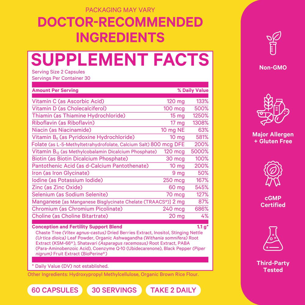 - Contains 17 vitamins and our proprietary conception and fertility support blend.