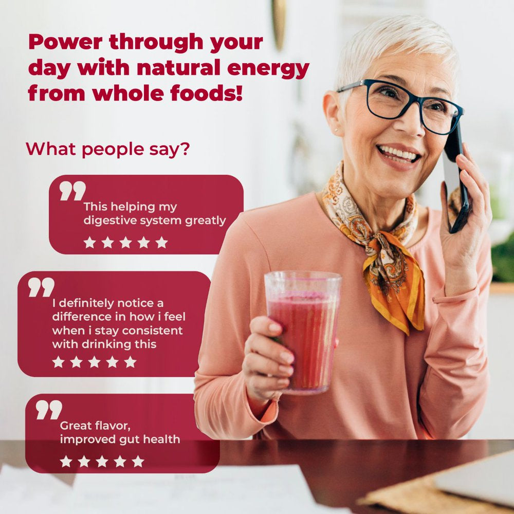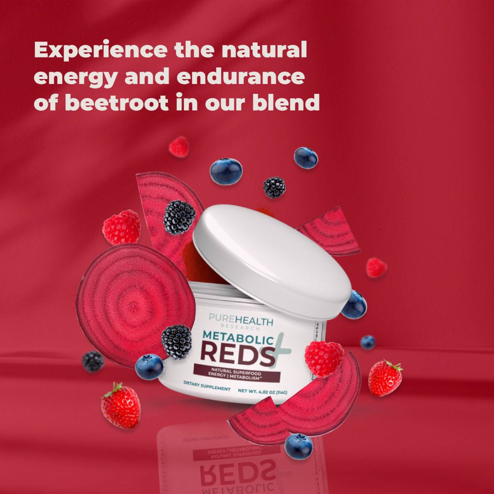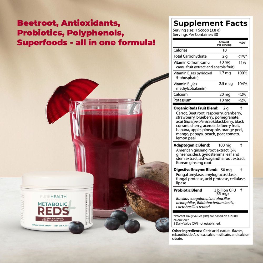 Reds Superfood Powder with Probiotics, 5 Digestive Enzymes, Beets & Ashwagandha Powder - Boost Drink for Body’S Detox & Cleanse by Purehealth Research, X6