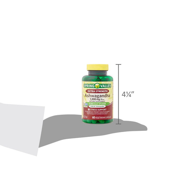 • Spring Valley Extra Strength Ashwagandha Dietary Supplement, 1300 mg, 60 Vegetarian Capsules