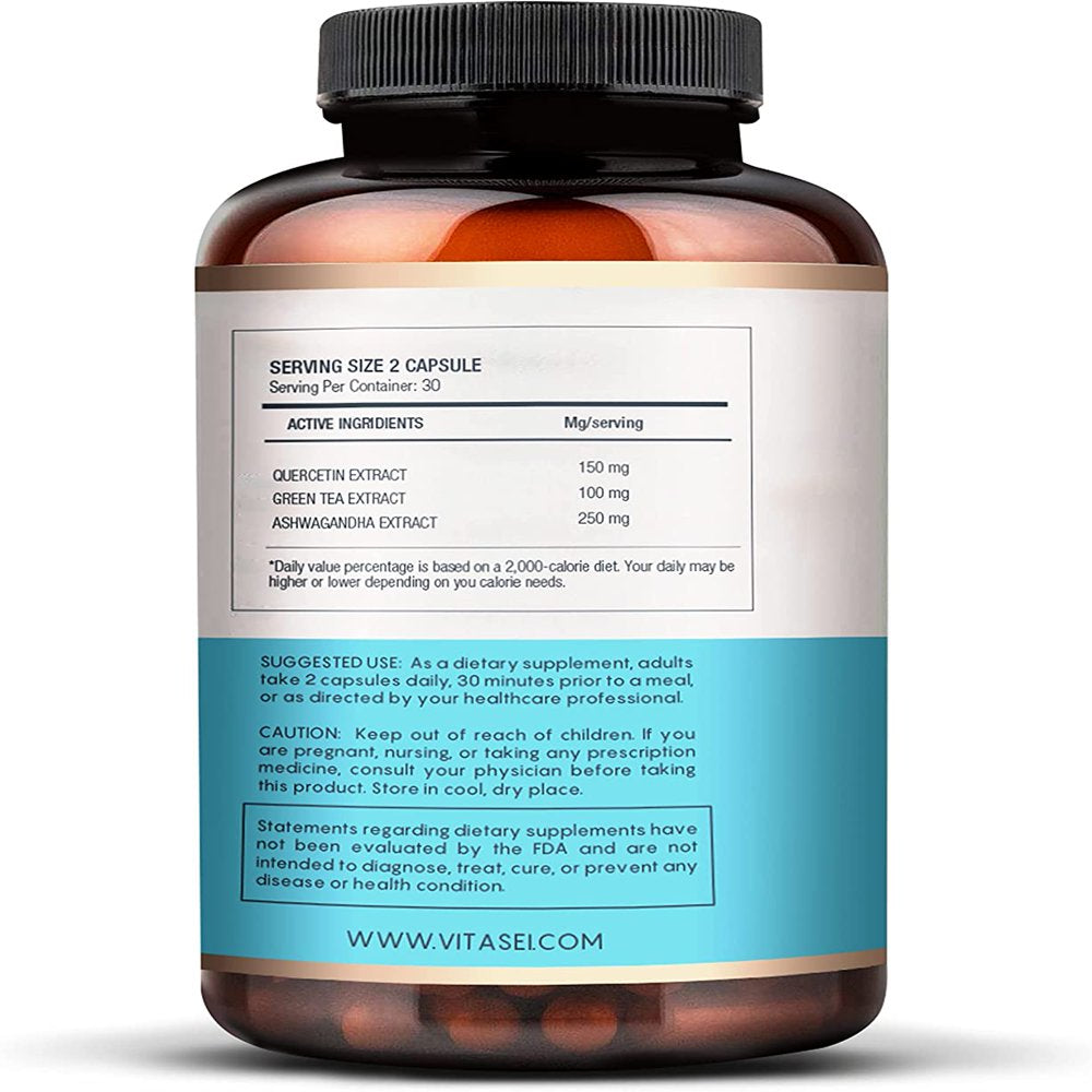 VITASEI IQ Complex AM Brain Booster Brain Supplements for Memory & Focus- Energy & Cognitive Capsules W/Ashwagandha, Quercetin & Green Tea, Memory Pills for Mental Clarity, Mental Focus- 60 Capsules