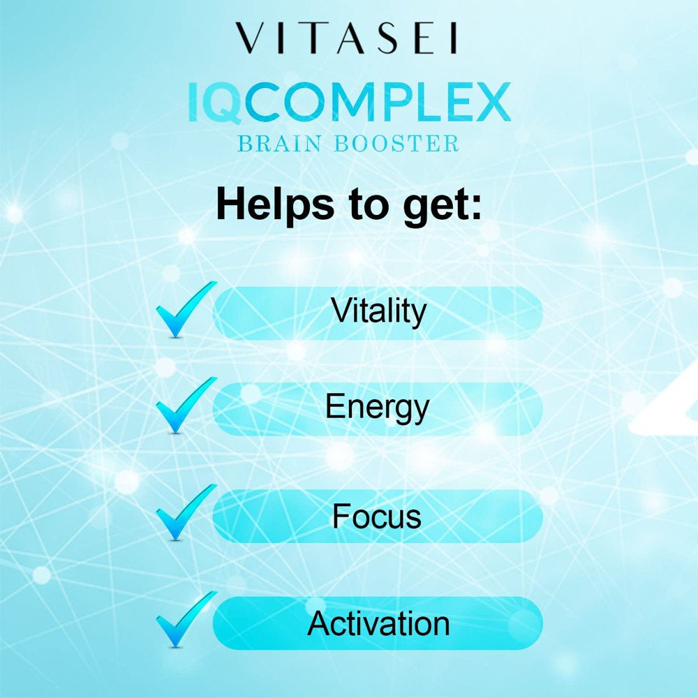 Package Includes: 1 X Vitasei IQ Complex AM Brain Booster Brain Supplements for Memory & Focus (60 Pills)