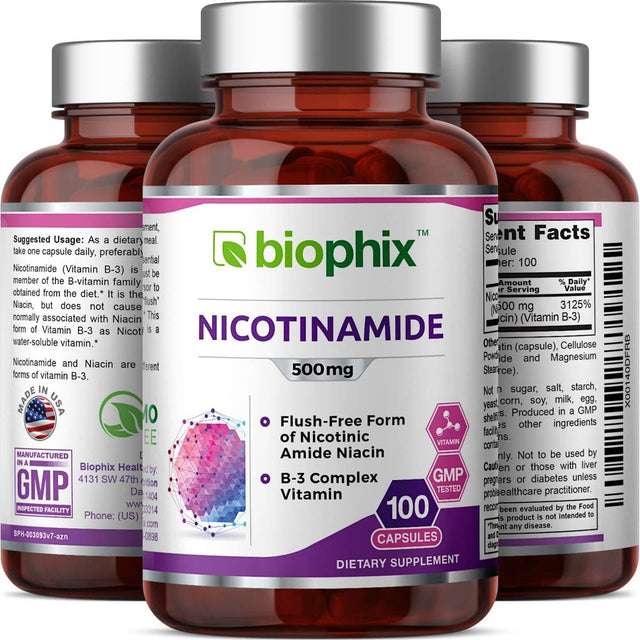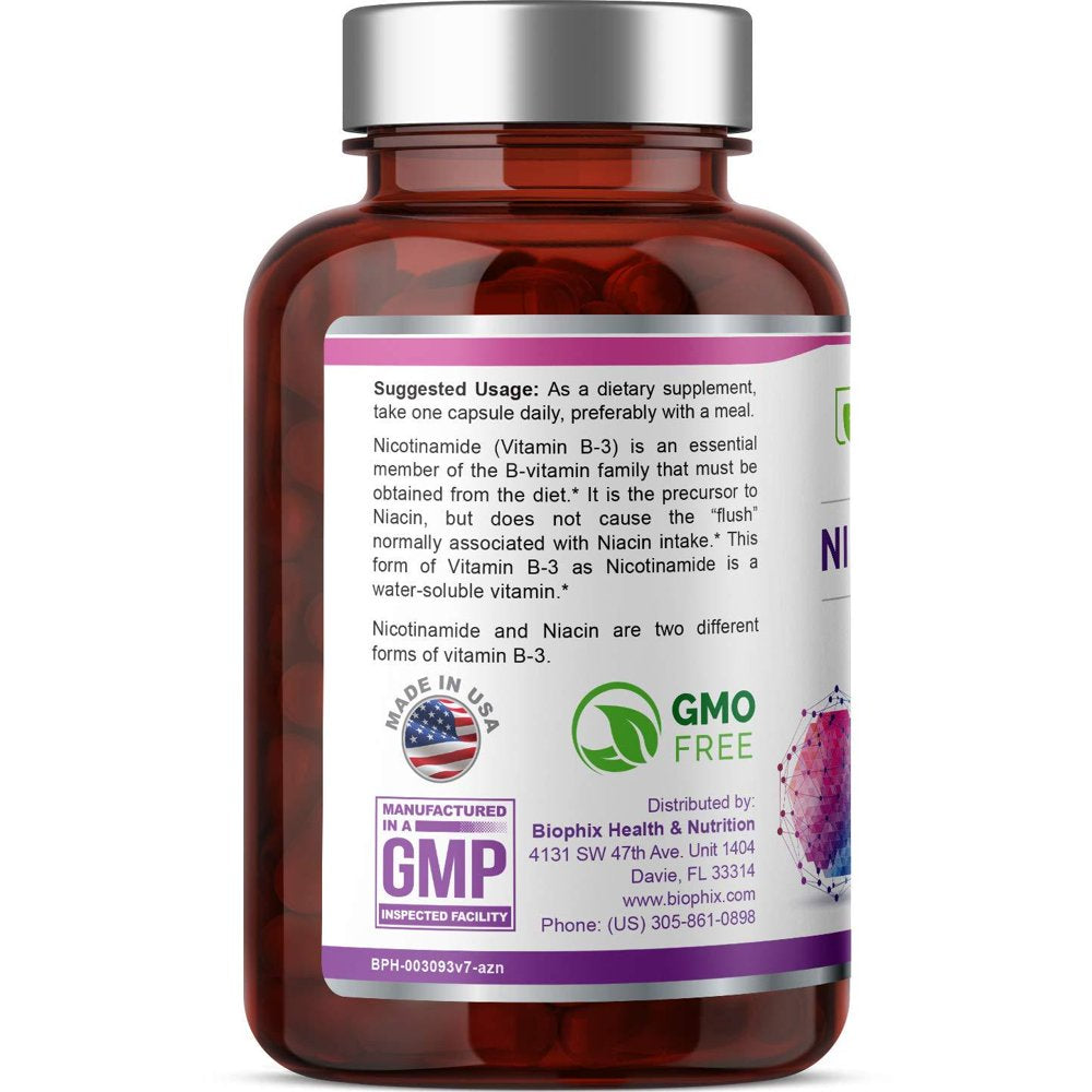 SUPPORT YOUR SKIN'S NATURAL DEFENSE MECHANISMS: Recommended by dermatologists. This valuable supplement is ideal for men, women, and aging individuals with sensitive or susceptible skin!* HELP SUPPORT THE BODY'S NATURAL RESPONSE TO SKIN BLEMISHES: Nicotinamide can help support your body's natural response to skin blemishes by supporting the skin's natural ability to regenerate a smooth outer layer clear of blemishes, red spots, bumps, and warts.* Preliminary clinical evidence suggests that nicotinamide may help support the body's natural ability to control Polymorphous light eruption, a type of photosensitivity. SUPPORT YOUR ENERGY LEVELS: Do you suffer from fatigue and low energy levels? There are many, many reasons for this condition that affects so many. One reason could be inside your cells - when they don't have the necessary nutrients to metabolize energy correctly.* Nicotinamide may support the body's natural mechanisms that improve energy production due to its role as a precursor of NAD, an important molecule involved in energy metabolism.* Nicotinamide is well tolerated. Nicotinamide is a different form of vitamin B3 to nicotinic acid or niacin. Nicotinic acid commonly causes headaches, flushing and low blood pressure, but these side effects are generally not seen with nicotinamide.* Preliminary evidence suggests that nicotinamide may support the body's natural ability to support healthy joint mobility and comfort, while other studies have shown that nicotinamide may support healthy blood glucose levels.* SATISFACTION GUARANTEED: Every product we ship from our US-based cGMP, Food and Drug Administration inspected facility is designed to support your health, happiness, and overall well-being. We are so confident in our quality control processes, that we offer a no-questions-asked 60 day money-back guarantee on our products. Please give us the opportunity to satisfy you by contacting us directly with any issue or concern.