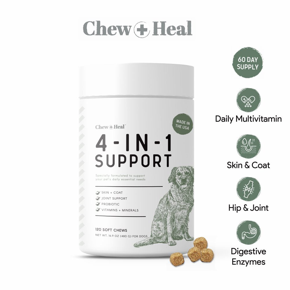 Chew + Heal All in 1 Dog Multivitamin (120 Soft Chews) Supplements for Skin, Coat, Hip and Joint Support
