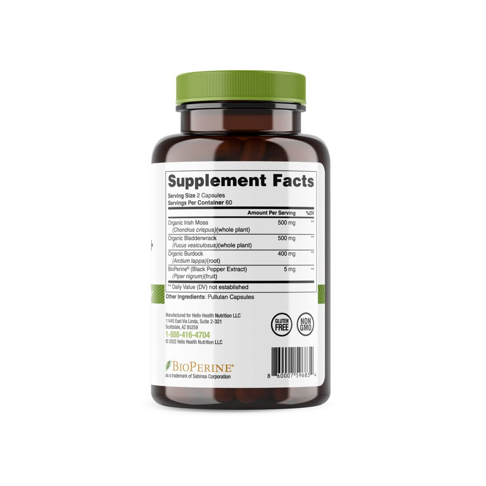 Hello Health Organic Irish Sea Moss - Bioperine Super Food for Immune Support -Thyroid Support - Gut, Skin & Joint Health - 120 Capsules