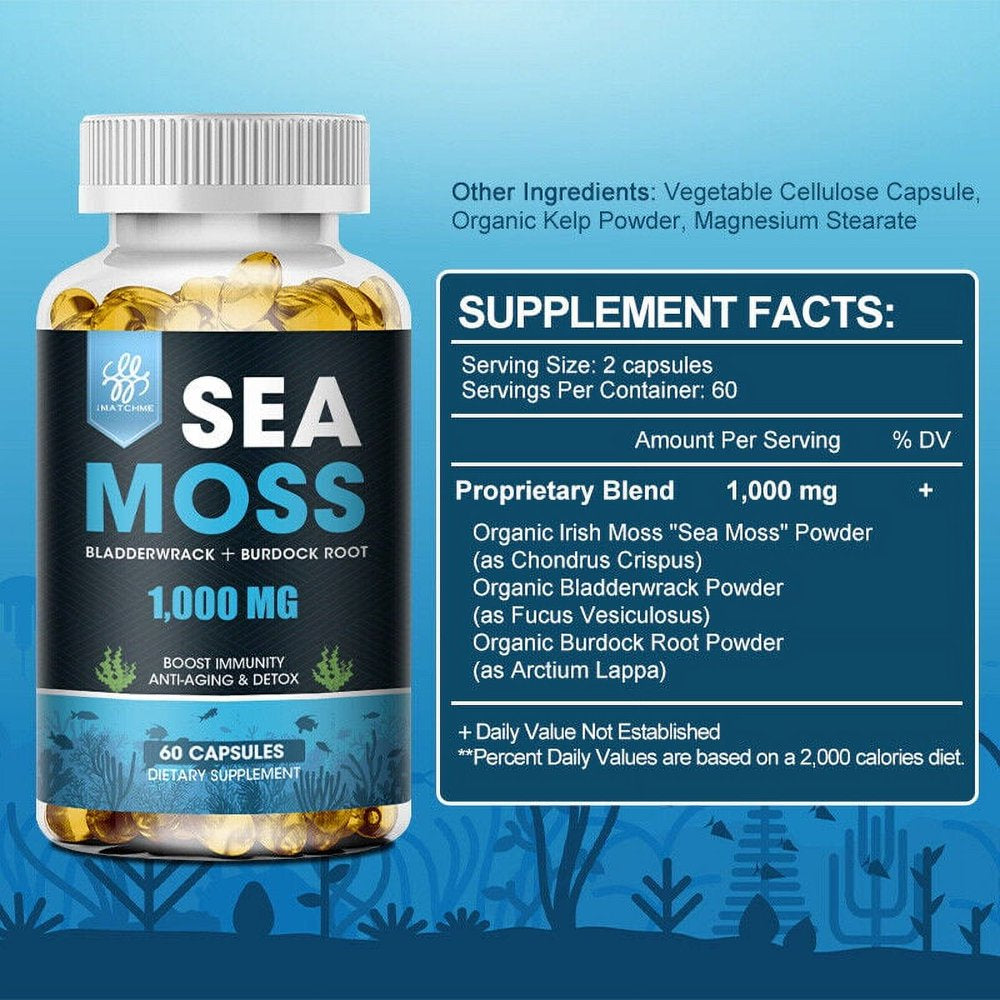 Imatchme 100% Natural Sea Moss Capsules 1000Mg Supplement - Immune System, Gut, Skin & Thyroid Support - 60 Capsules
