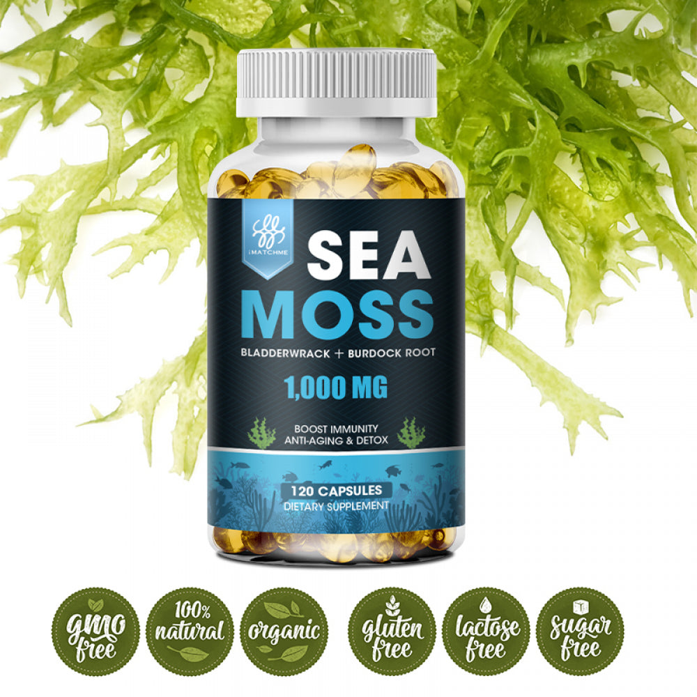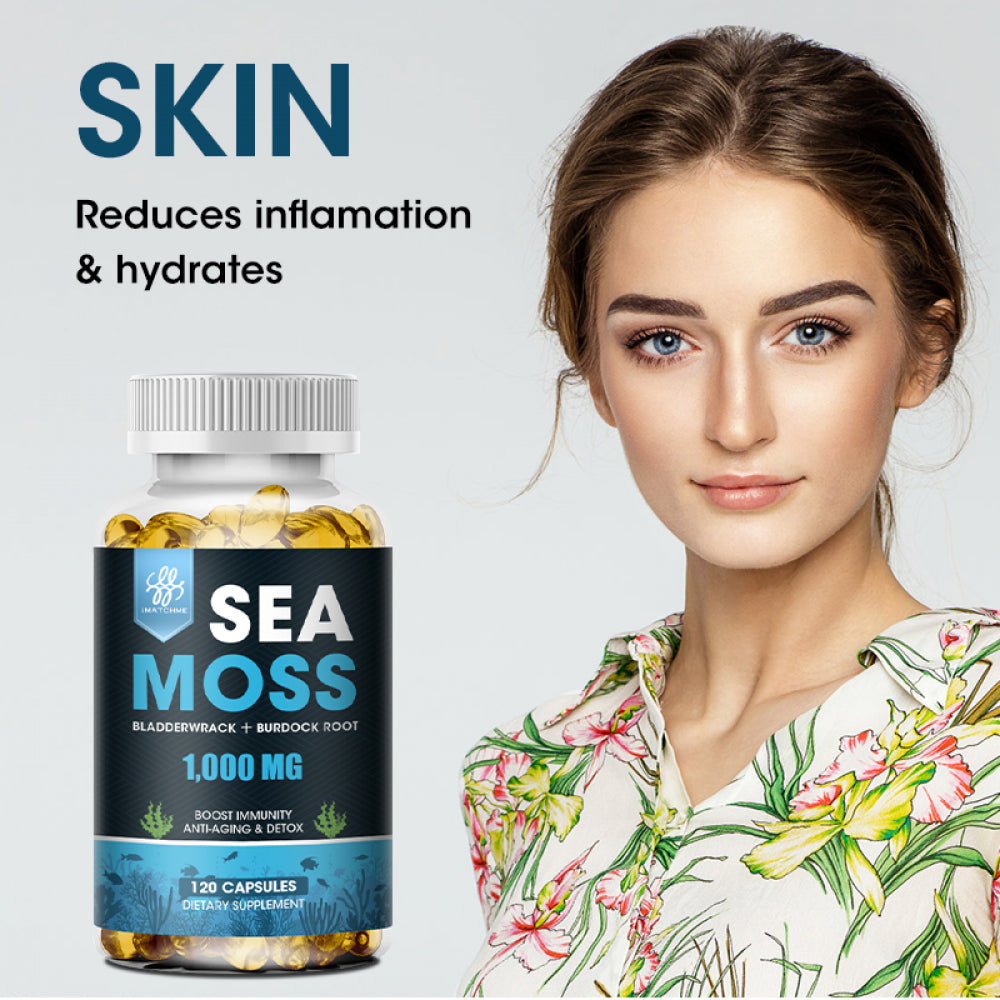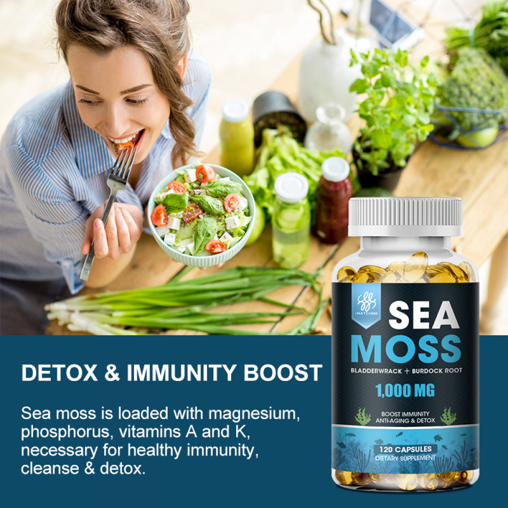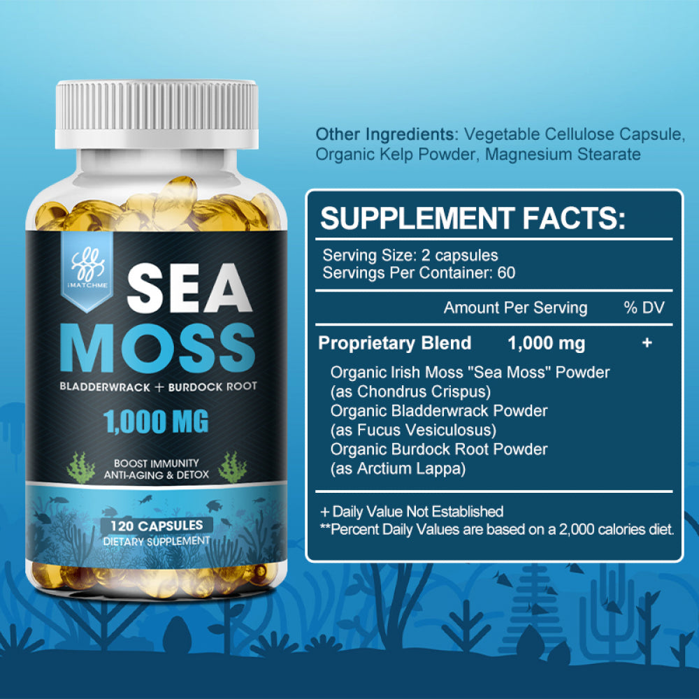 Imatchme Organic Sea Moss Capsules 1000Mg with Bladderwrack, Burdock Root for Immune System, Gut, Skin & Energy,60 Count