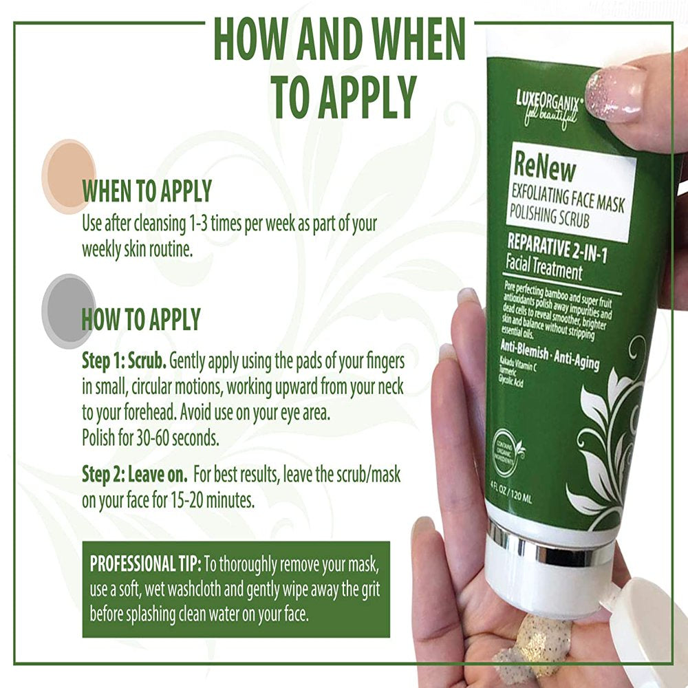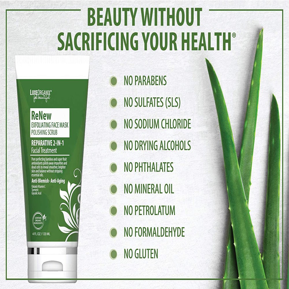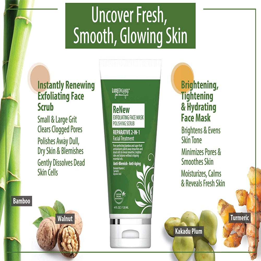 - PURE GOODNESS – Rethink skincare products ridden with artificial ingredients. Refresh your face with LuxeOrganix’s naturally transformative 2-in-1 ReNew facial scrub and mask!
