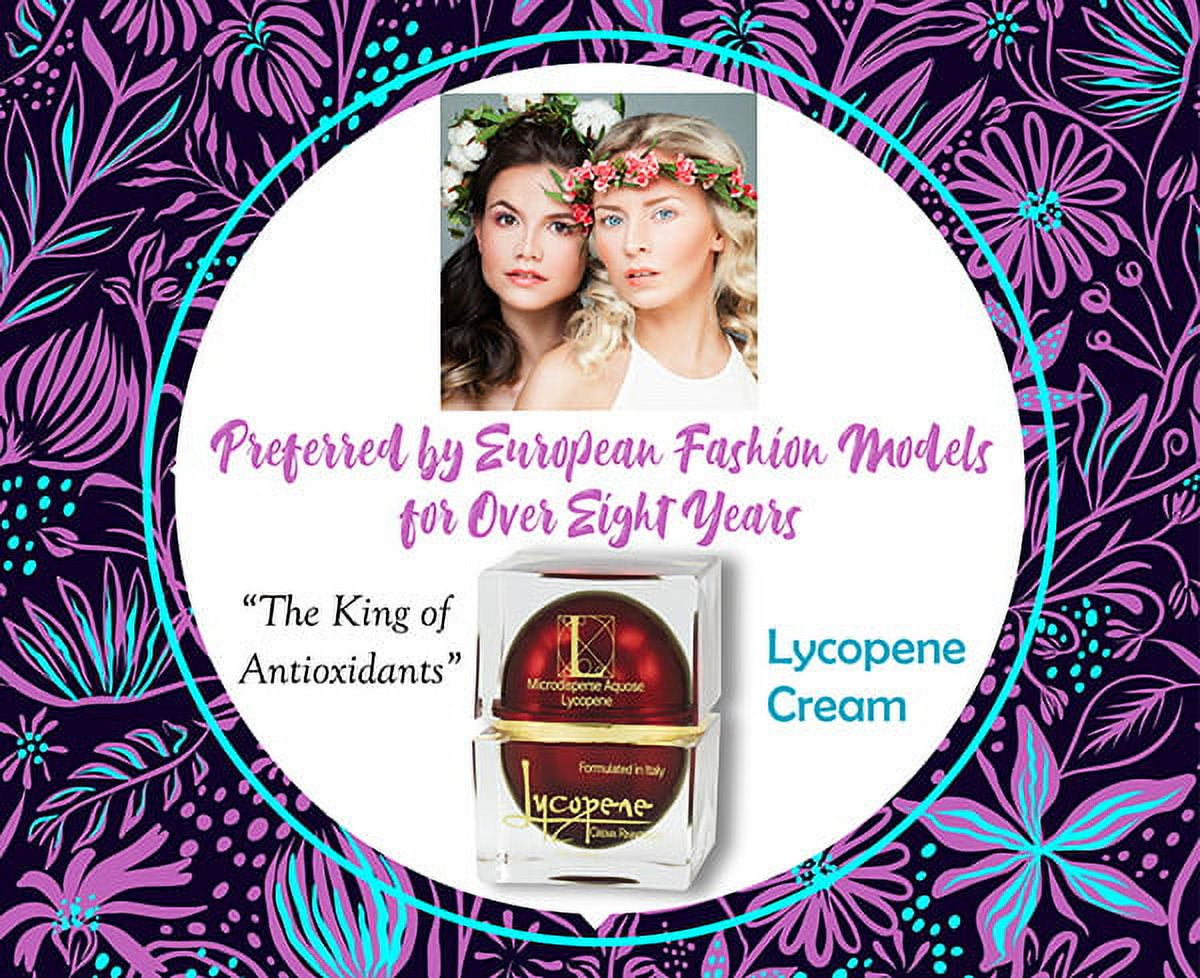 Advances skin health to a new level by combining two of nature’s most powerful antioxidants -- lycopene and astaxanthin -- with nineteen natural botanicals and moisturizers to nourish and hydrate your skin. Aquose Microdispersed Lycopene (AML), a new form of lycopene created for Lycopene Skincare, is a water soluble, solvent-free carotenoid with the highest-known antioxidant activity available today.Then by combining hyaluronic acid with the natural muscle relaxant Acmella oleracea, fine lines and wrinkles are visibly reduced.Formulated in Italy Net weight: 30 ml Directions: Evenly apply liberally to clean face and neck twcie a day and follow with Lycopene skincare SOC under eye-complex. For morning use, apply prior to using sunscreen or makeup. Ingredients: aqua (deionized water), glycerin, caprylic/capric trygliceride, glyceryl monostearate SE, Cetearyl alcohol, SD-alcohol 40B, Dimethicone, stearic acid, titanium dioxide, aquose - micro-dispersel ycopene, amygdalus dulcis (sweet almond) oil, rosmarinus officilinalis (rosemary) extract, tocopheryl acetate (vitamin E), Triticum Vulgare (Wheat) germ oil, retinyl palmitate (vitamin A), Carbomer, hydrolyzed, wheat proteins, Sodium Hyaluronate (Hyaluronic Acid) Sodium Hydroxide, Lecithin, Silica, Iron Oxides, Chamomille Recutita (Chamomile) extract, Centella Asiatica (hydrocotyl) extract, glycrrhiza glabra (licorice) root extract, artica lappa (burdock) root extract, acmella oleracia extract, ceramide III, malva sylvestris leaf (mallow) extract, salvia officinalis (sage) extract, equisetum arvense (horsetail) extract, Camellia sinensis leaf, (Green tea) extract, ginkoa biloba, polysorbate-20, calendula officinalis extract, vitis vinifera (grape seed) extract, astaxanthin, hamamelis virginiana (witch hazel) extract, hypeircum perforatum extract, helichrysum italicum extract, ethylhexylglicerin parfum (natural fragrance)