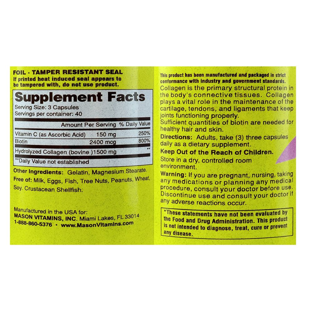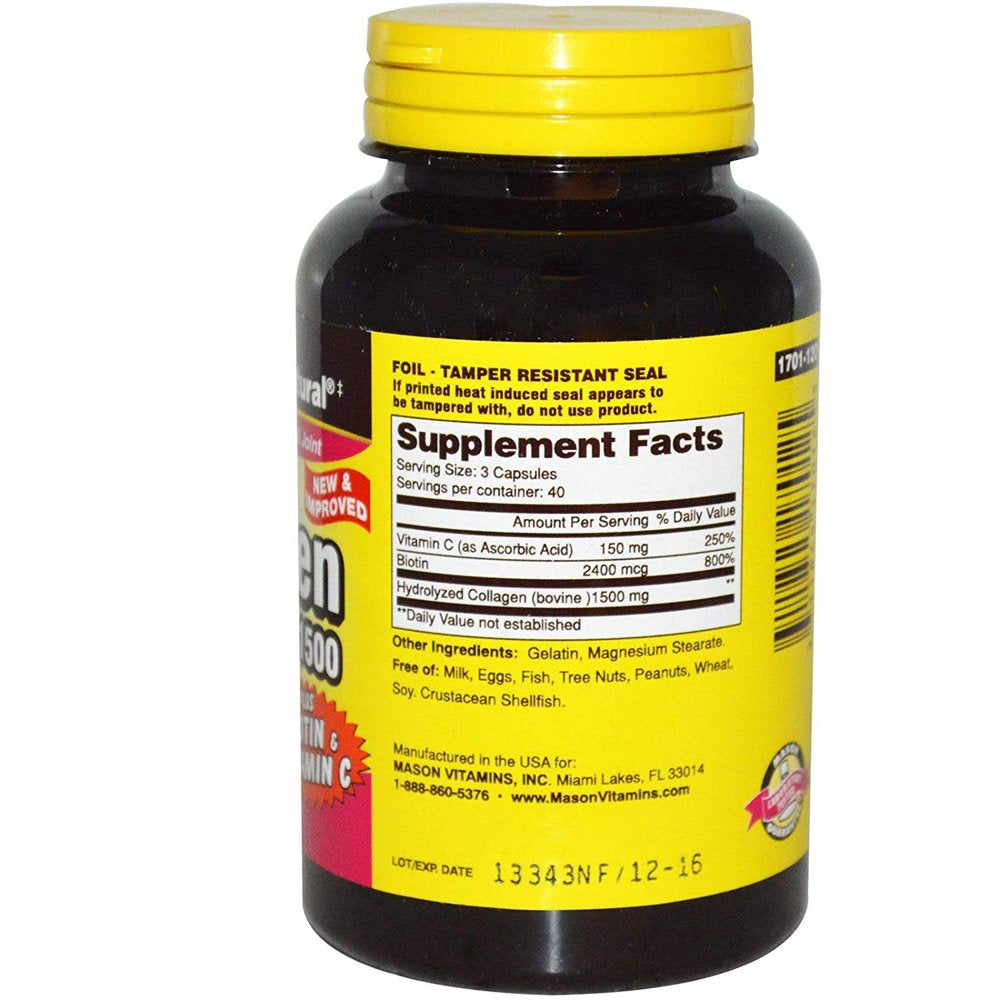 Mason Natural Collagen plus Biotin & Vitamin C for Skin & Joint, 1500 Mg, 120 Ct