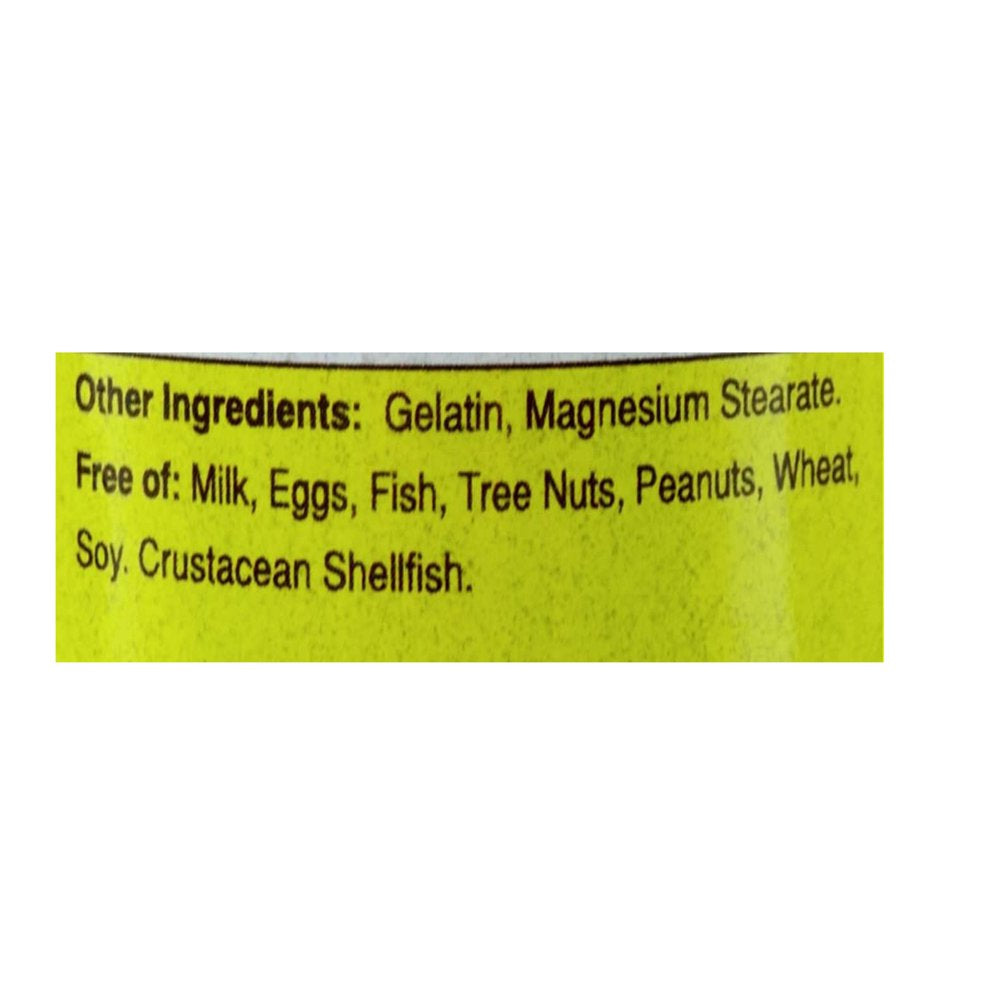 Suggested UseAdults, take 3 three capsules daily as a dietary supplement.Other IngredientsGelatin, magnesium stearate.Free of: Milk, eggs, fish, tree nuts, peanuts, wheat, soy. Crustacean shellfish.WarningsFoil-Tamper Resistant SealIf printed heat induced seal appears to be tampered with, do not use product.Keep out of the reach of children.Store in a dry, controlled room environment.If you are pregnant, nursing, taking any medications or planning any medical procedure, consult your doctor before use. Discontinue use and consult your doctor if any adverse reactions occur.