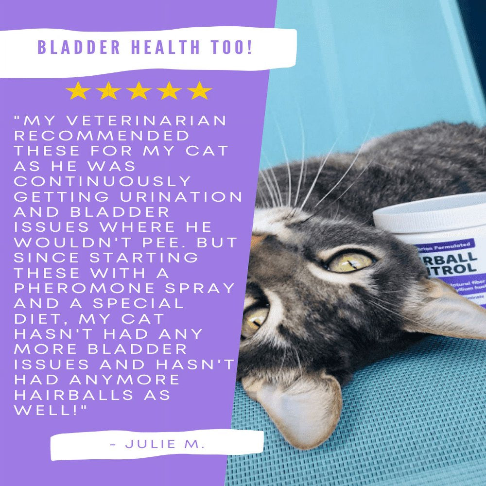 • CRANBERRY FOR URINARY HEALTH - The innovative addition of Cranberry into our hairball control supplement supports urinary health by helping to create a bladder environment that prevents against uti infections and maintains the lining of the bladder wall for your cat.