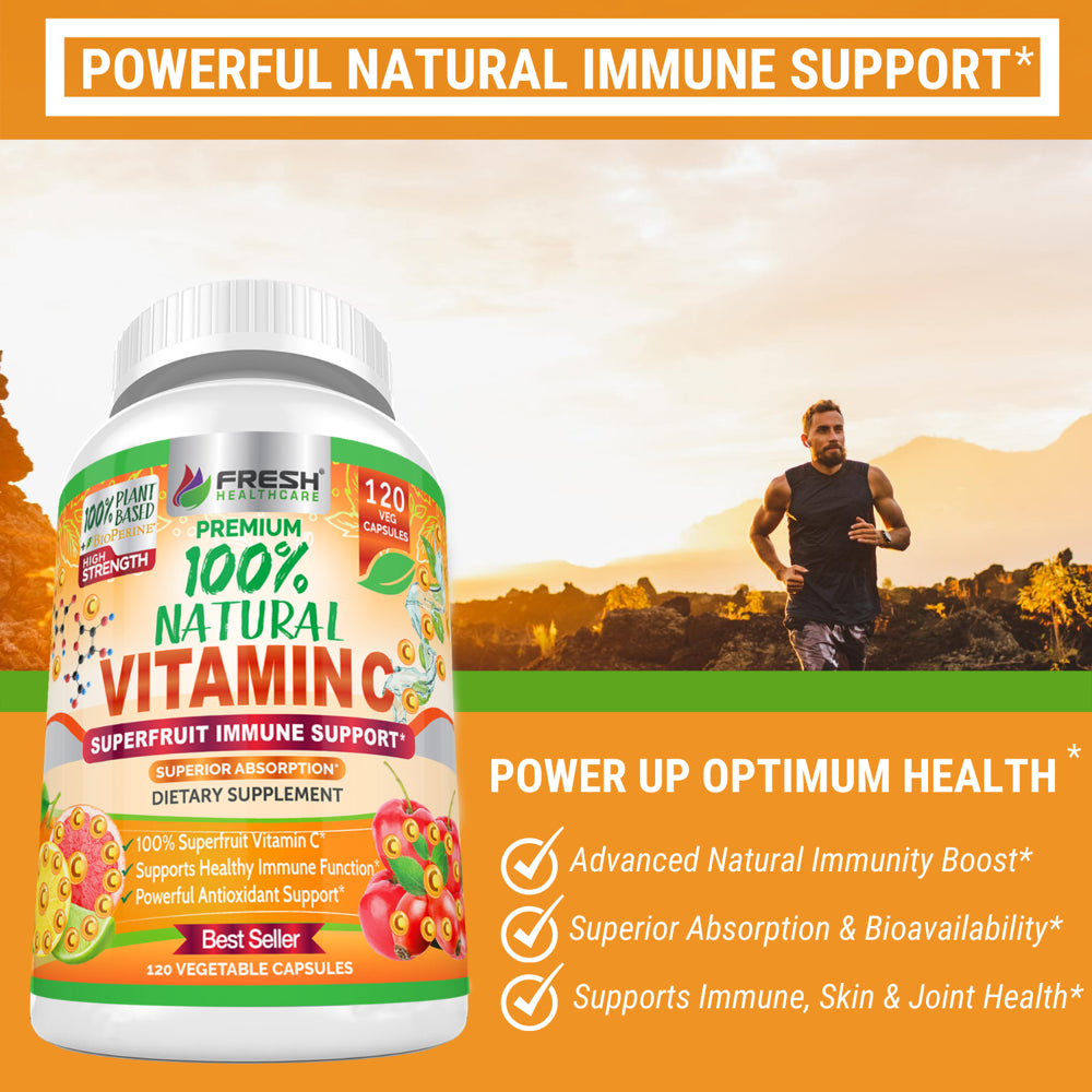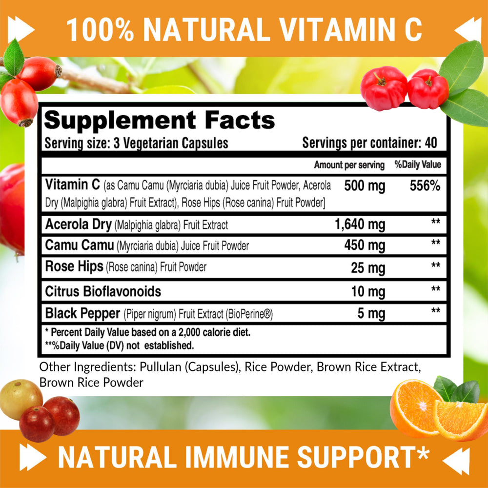 - ✅ 100% NATURAL VITAMIN C SUPERFRUIT IMMUNE SUPPORT: Our Powerful & Potent 100% Natural Vitamin C Formula is made Exclusively from The Most Vitamin C Rich Superfruits Found on the Planet - Acerola Cherry, Rose Hips and Camu Camu and contains Zero Artificial Ascorbic Acid. Our Vitamin C Capsules are the Ideal way to get Your Natural Daily Dose of Pure, Clean Vitamin C for Immunity Boost Support with over 550% Daily Value Per Serving.*