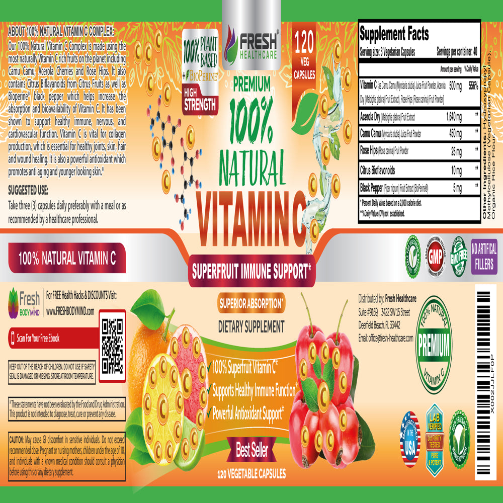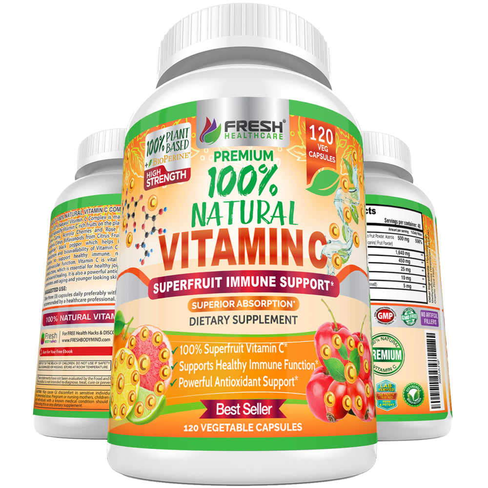- ✅ OUR 100% CUSTOMER SATISFACTION GUARANTEE: We want you to be Fully Satisfied with our Premium 100% Natural Superfruit Vitamin C Supplement. That’s why we back every order with our 100% - 120 Day Money-Back Satisfaction Guarantee so You can Shop with Confidence. If you are not Entirely Satisfied with your 100% Natural Vitamin C Powder Capsules, simply contact us, Fresh Healthcare.*