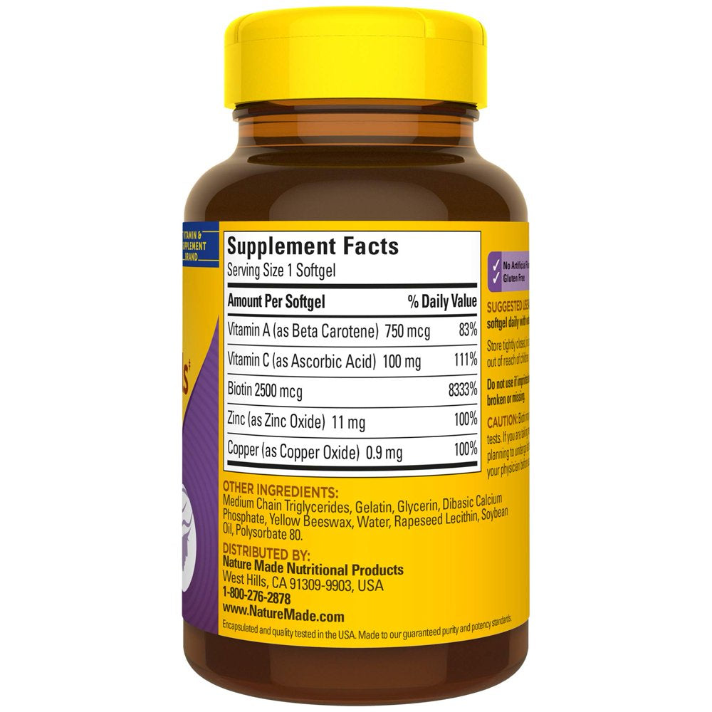 Nature Made Hair, Skin, Nails With Biotin Softgel, 2500 Mcg, 60 Ct