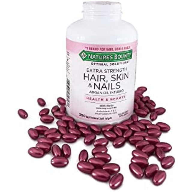 Nature's Bounty Optimal Solutions Hair, Skin & Nails formula contains just the right balance of nutrients to help support lustrous hair, healthy nails and vibrant skin.? This innovative formula provides B vitamins, antioxidant vitamins C & E, vitamin A, hyaluronic acid and more. Because being healthy is always beautiful!