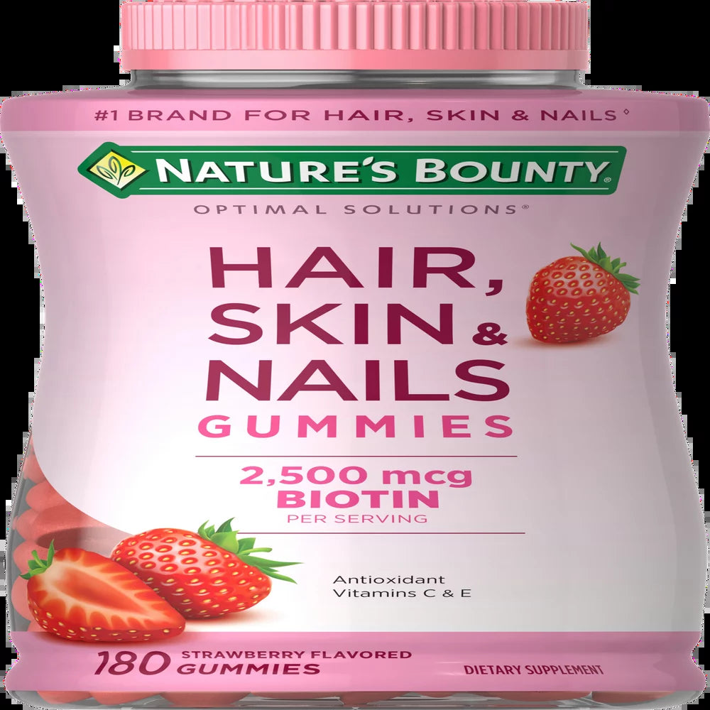 - WITH BEAUTY-SUPPORTING BIOTIN*: Nature's Bounty Hair, Skin & Nails Gummies contain beauty-supporting biotin, a vital nutrient that helps to maintain healthy hair while supporting overall beauty.*