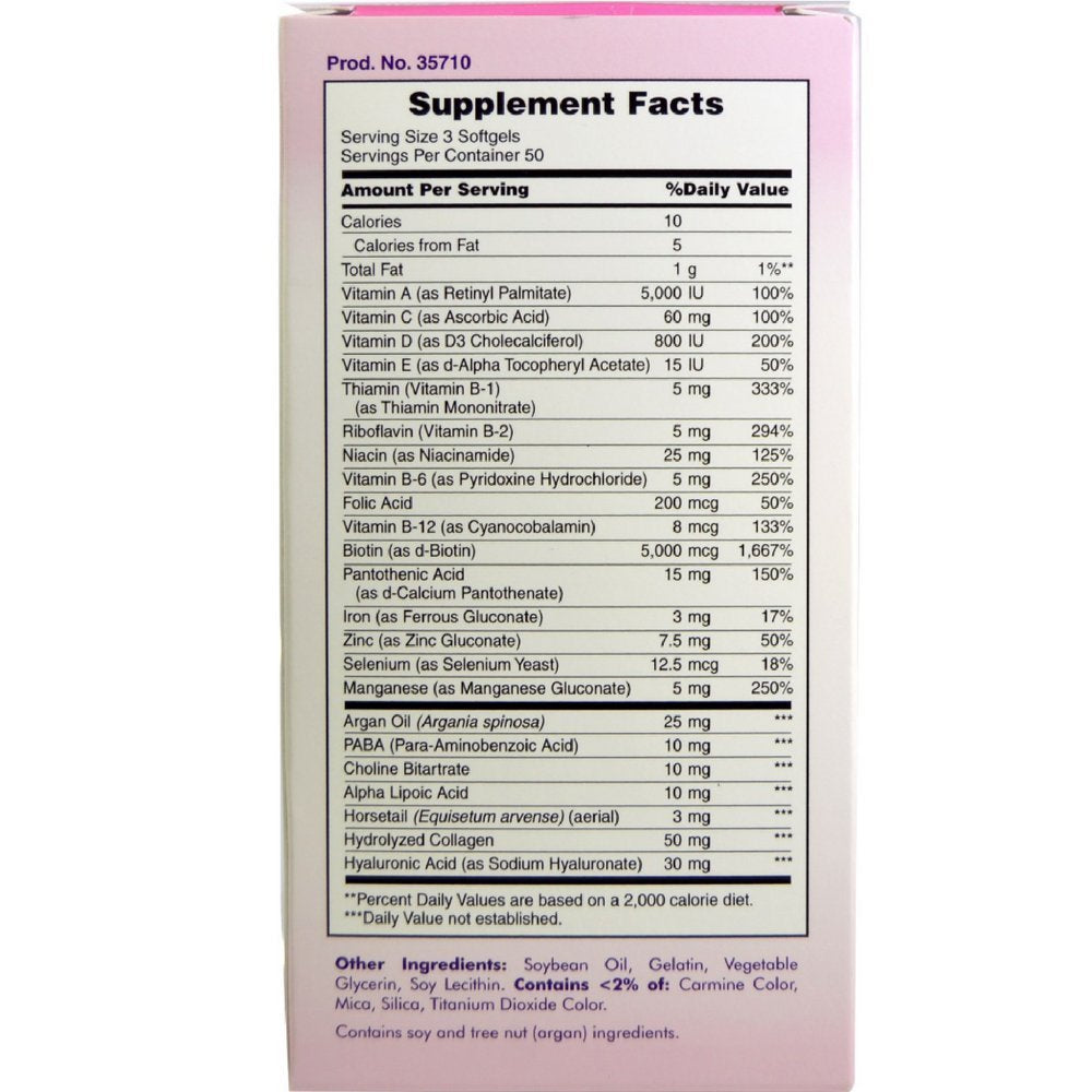 - Pack of 4 for the UPC: 074312357107 Dietary SupplementBeauty Starts on the Inside™150 Coated CapsulesIncluding: